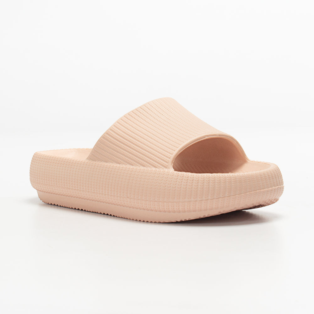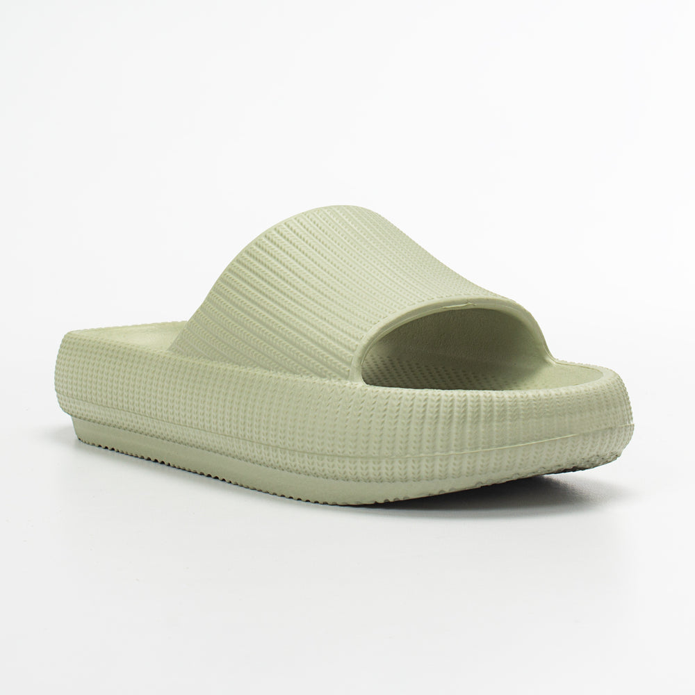 Sandalias planaforma de moda para mujer en múltiples colores como el negro, palo de rosa, blanco hueso y verde oliva. De material ligero con tendencia minimalista.
