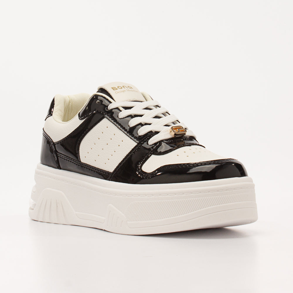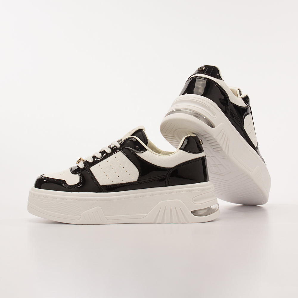 Tenis con suela alta de moda para mujer, en colores neutros como el blanco x negro y...