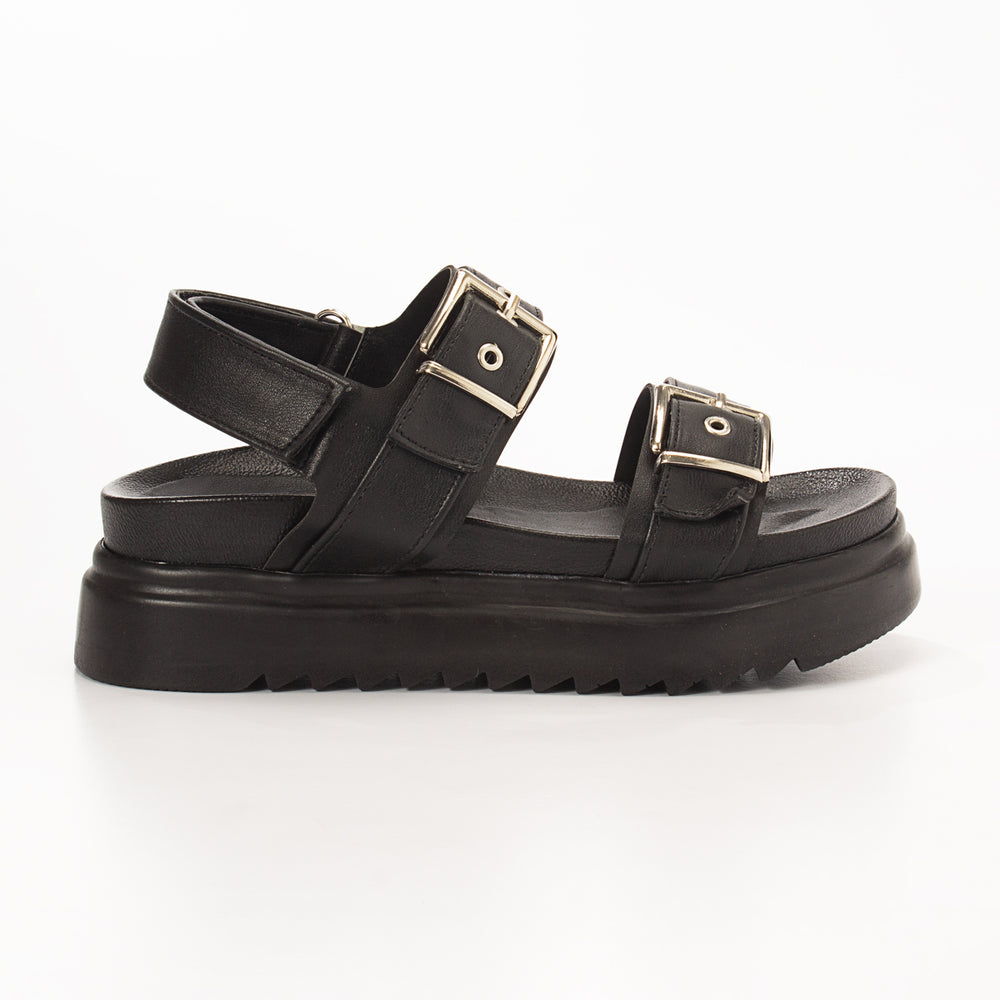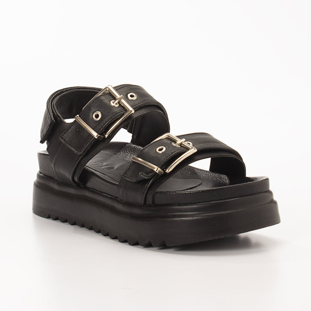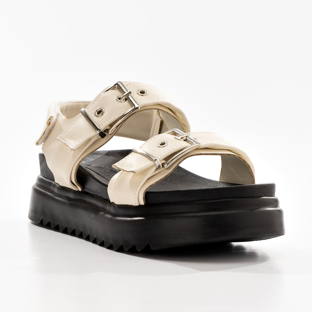 Sandalia de moda para mujer. en suela liviana con dos correas de hebilla y amarre al tobillo...