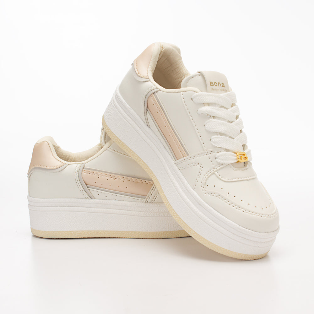 Tenis de moda para mujer, en tonos neutros como el blancoxrosa y blanco. Este tipo de zapatos...