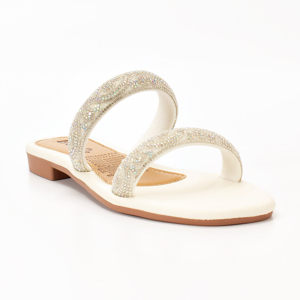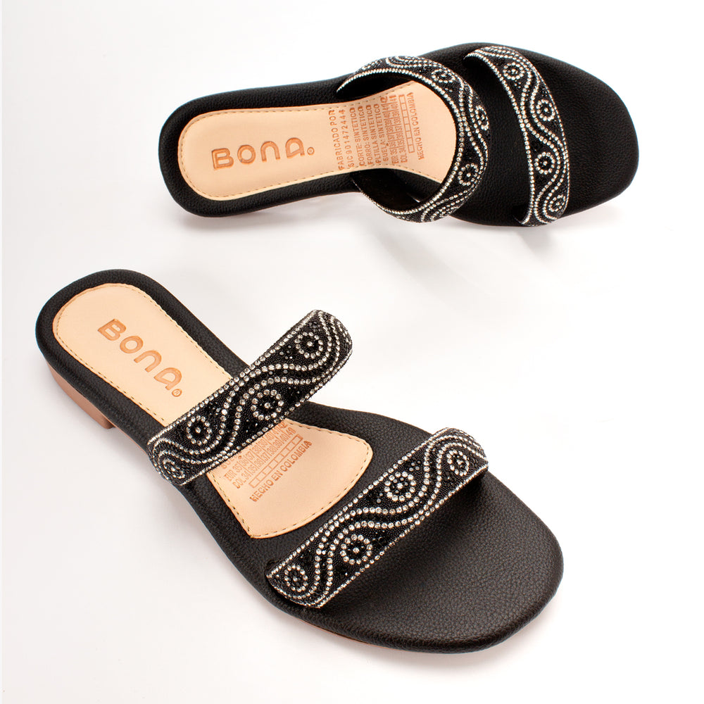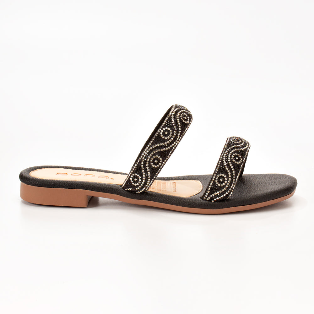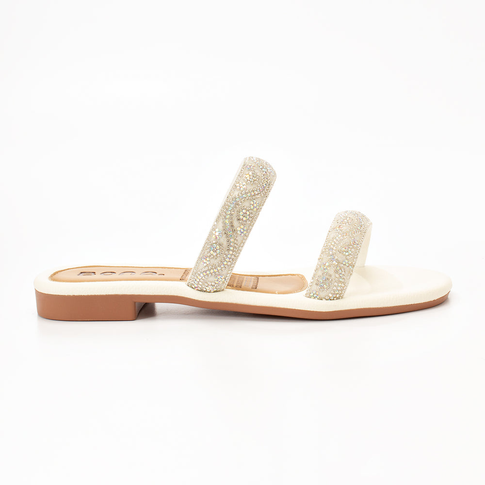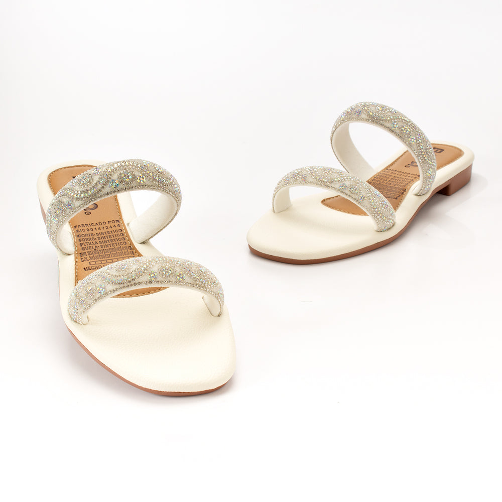 Sandalias plana de moda para mujer, con correas en Murano , en colores neutros como el negro y blanco hueso.