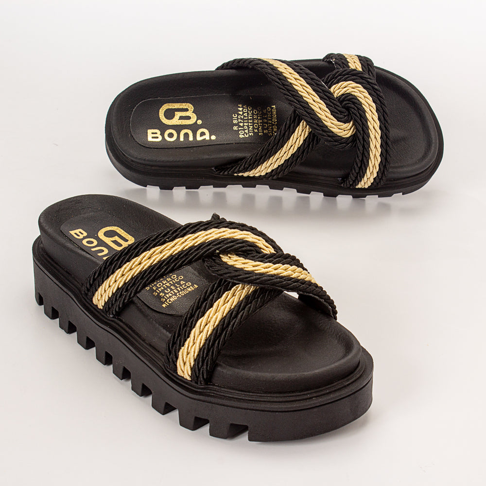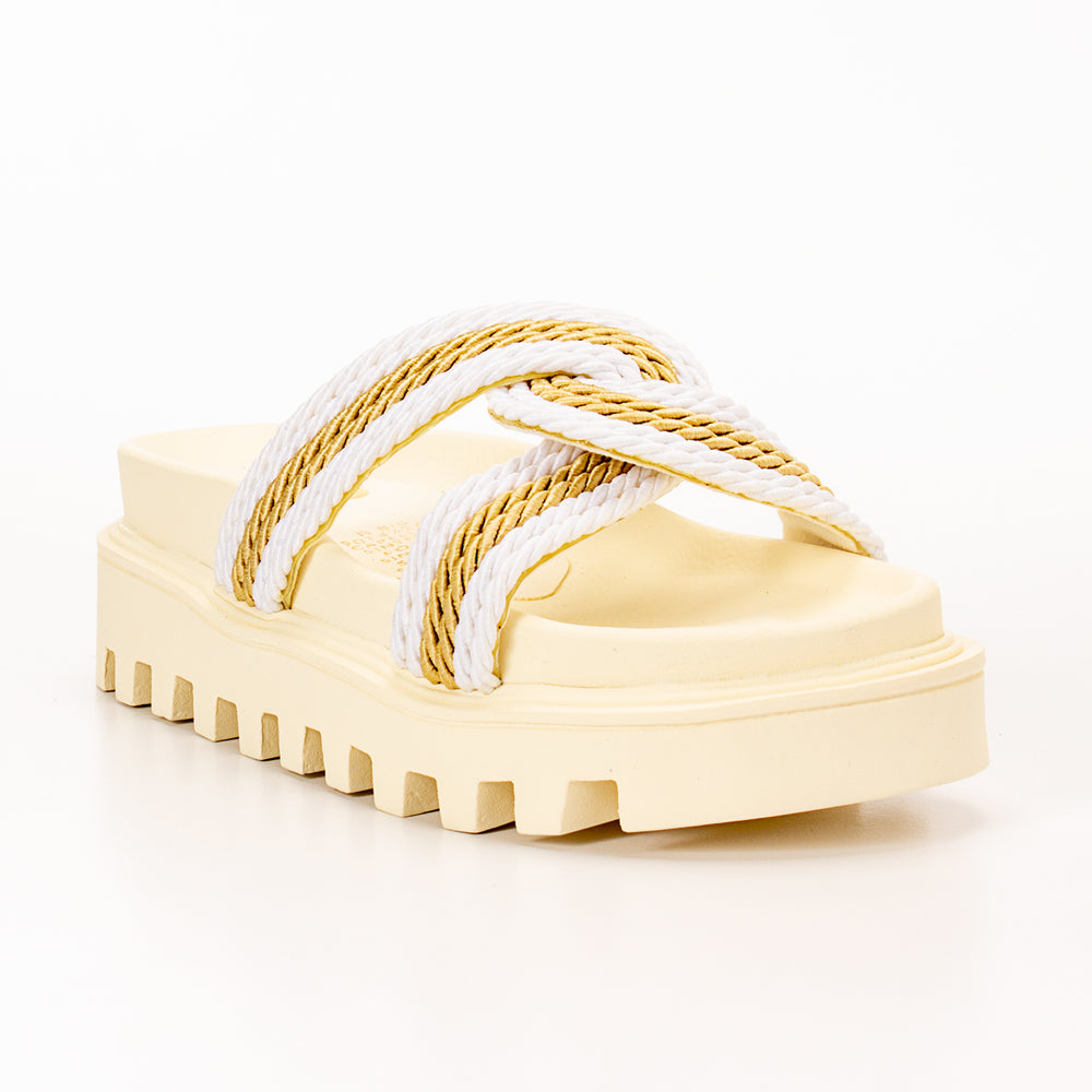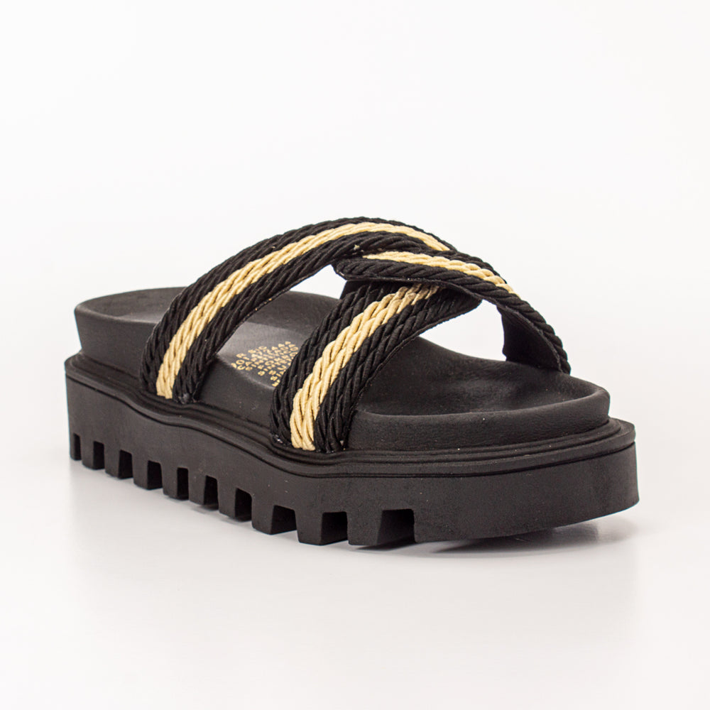 Sandalia de moda para mujer, con un mix de materiales y correa cruzada en yute. en colores...