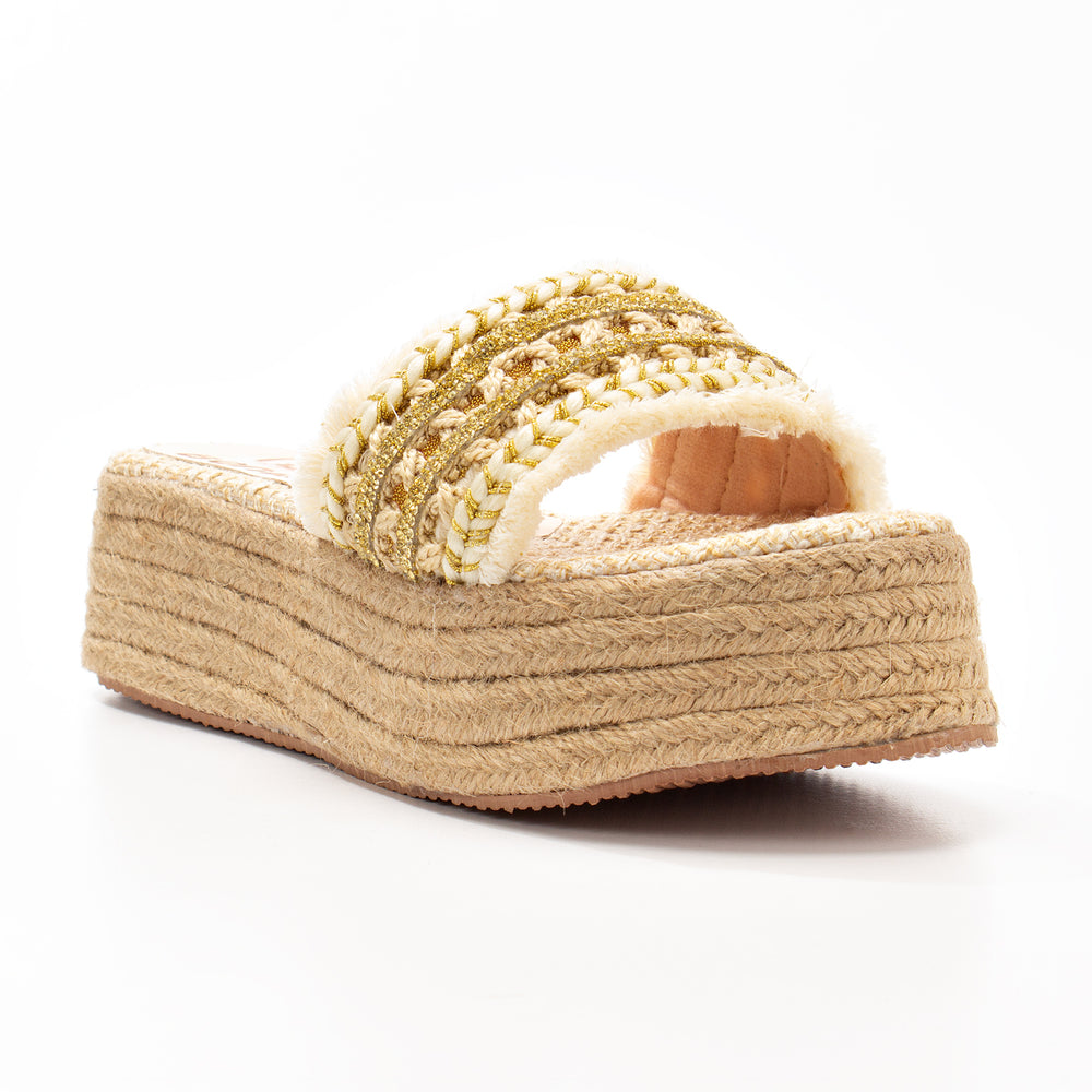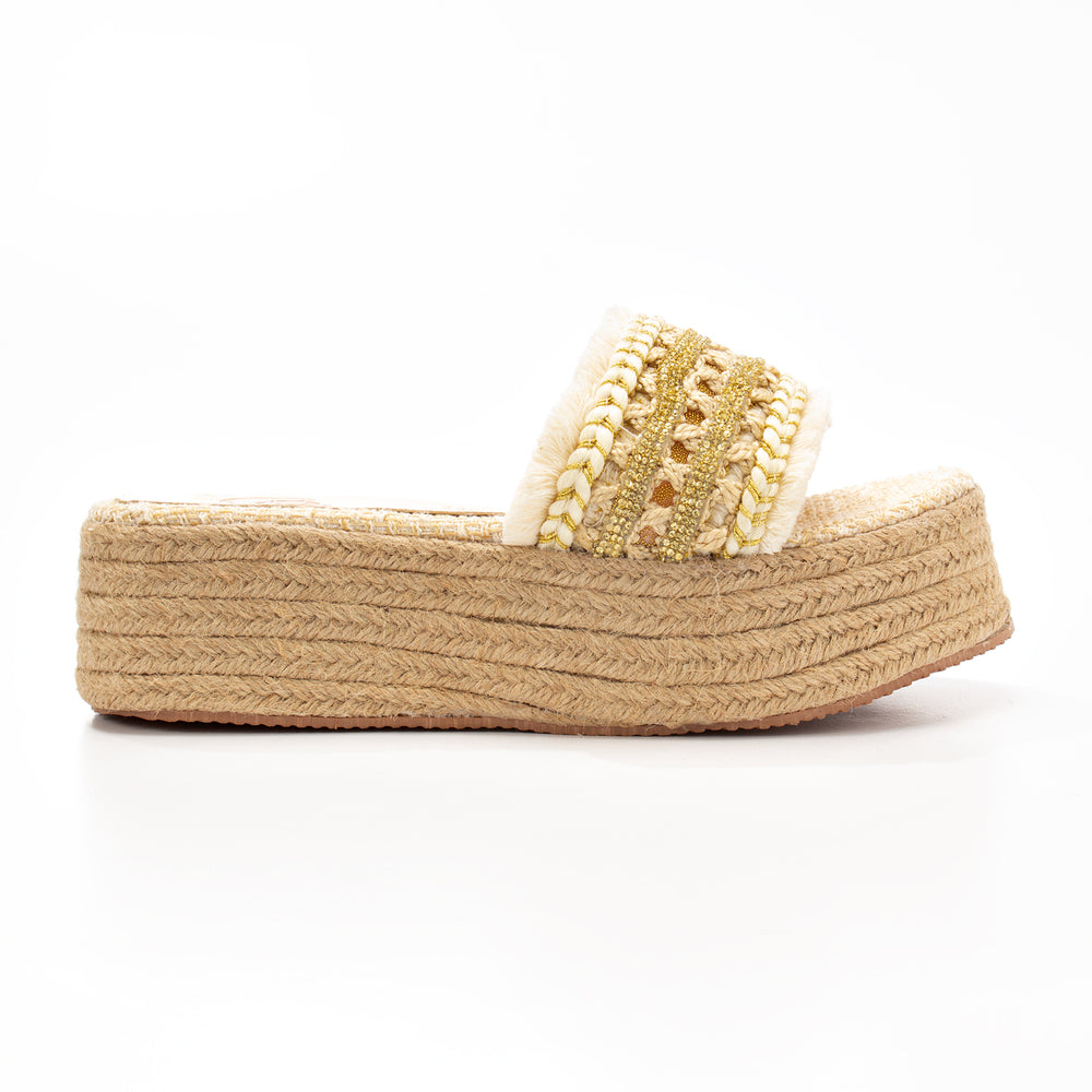 Sandalias de moda para mujer, con plataforma en yute, en capellada y detalles en brillo, ideales para...