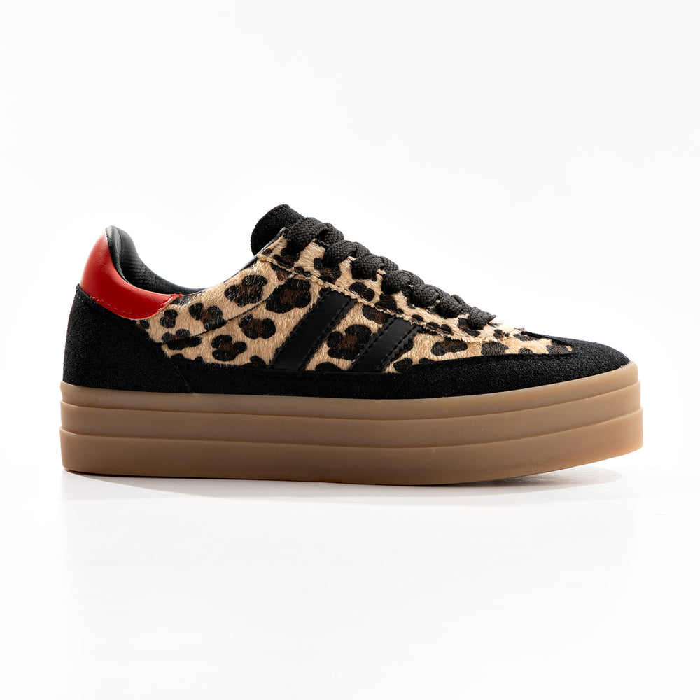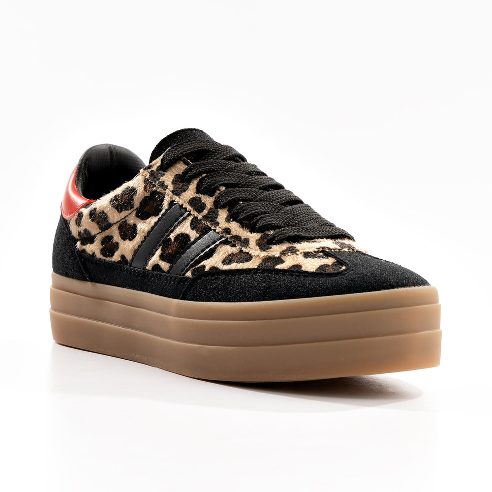 Tenis de moda para mujer, utilizan material sintético premium y destacan por su impresionante gama de combinaciones: negro con animal print audaz, blanco con gris elegante, blanco con negro clásico, miel cálido, vinotinto sofisticado y arena natural.
