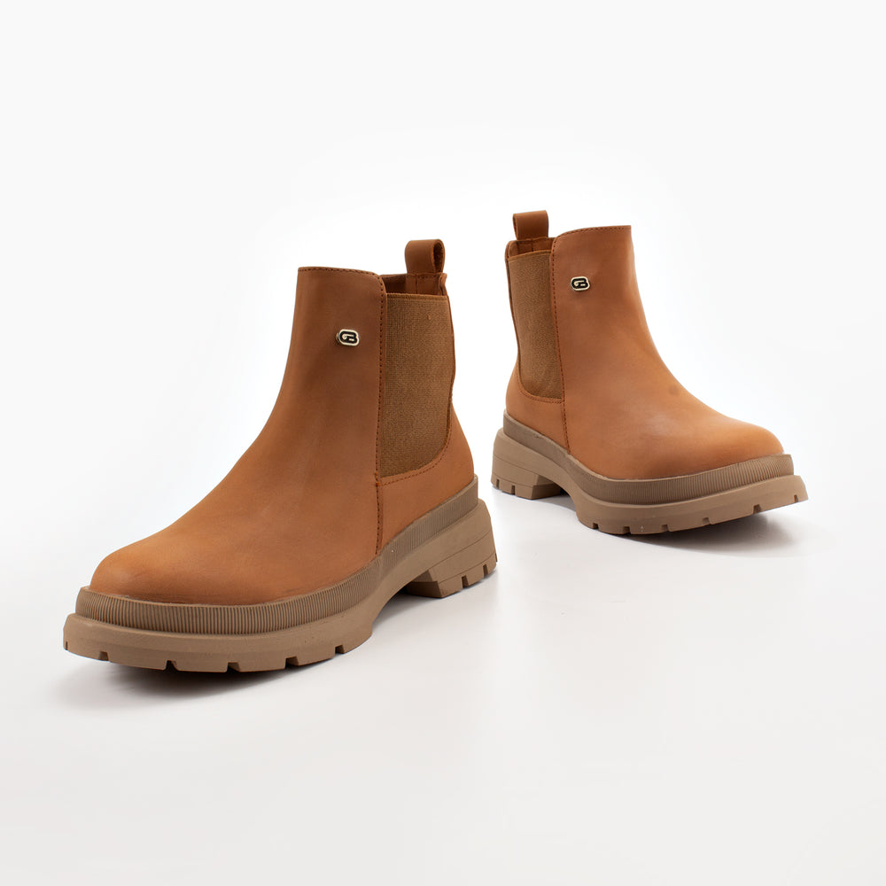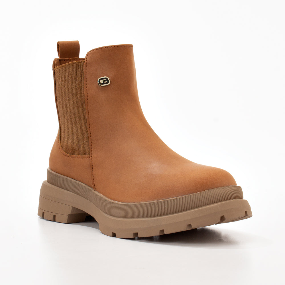 Botín de punta redonda con confort elástico. Sus colores miel y negro son ideales para esos días donde quieres un look sobrio pero que combine con absolutamente todas tus ocasiones.