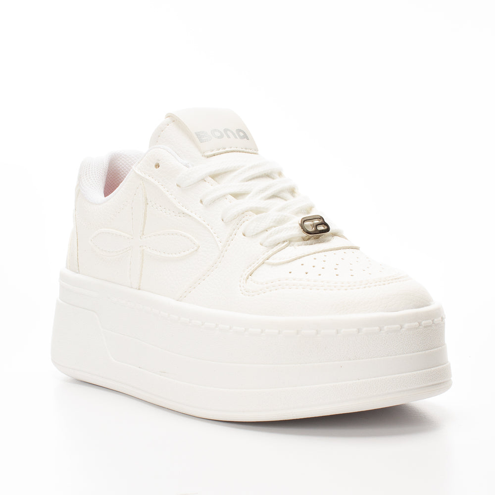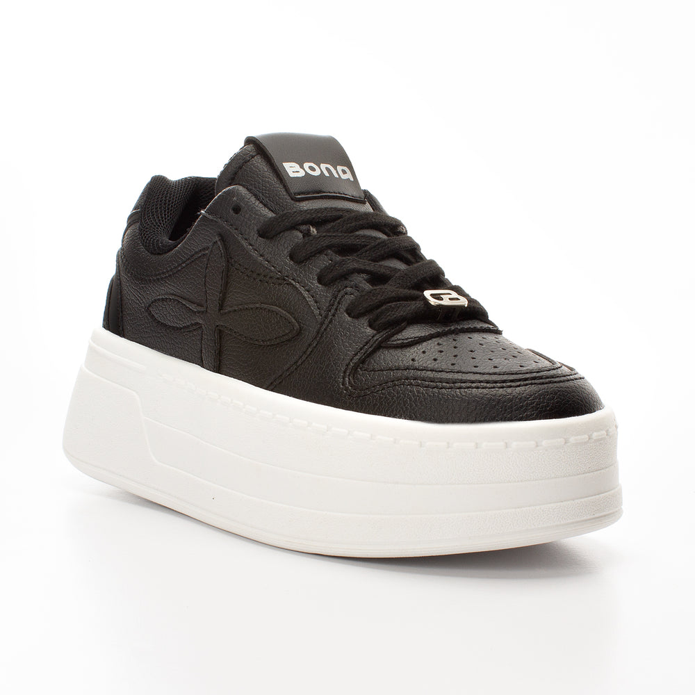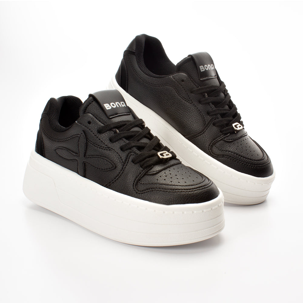 Tenis básicos de moda para mujer, con suela tipo tabla y detalles en sintéticos, en tonos como el blanco y negro.