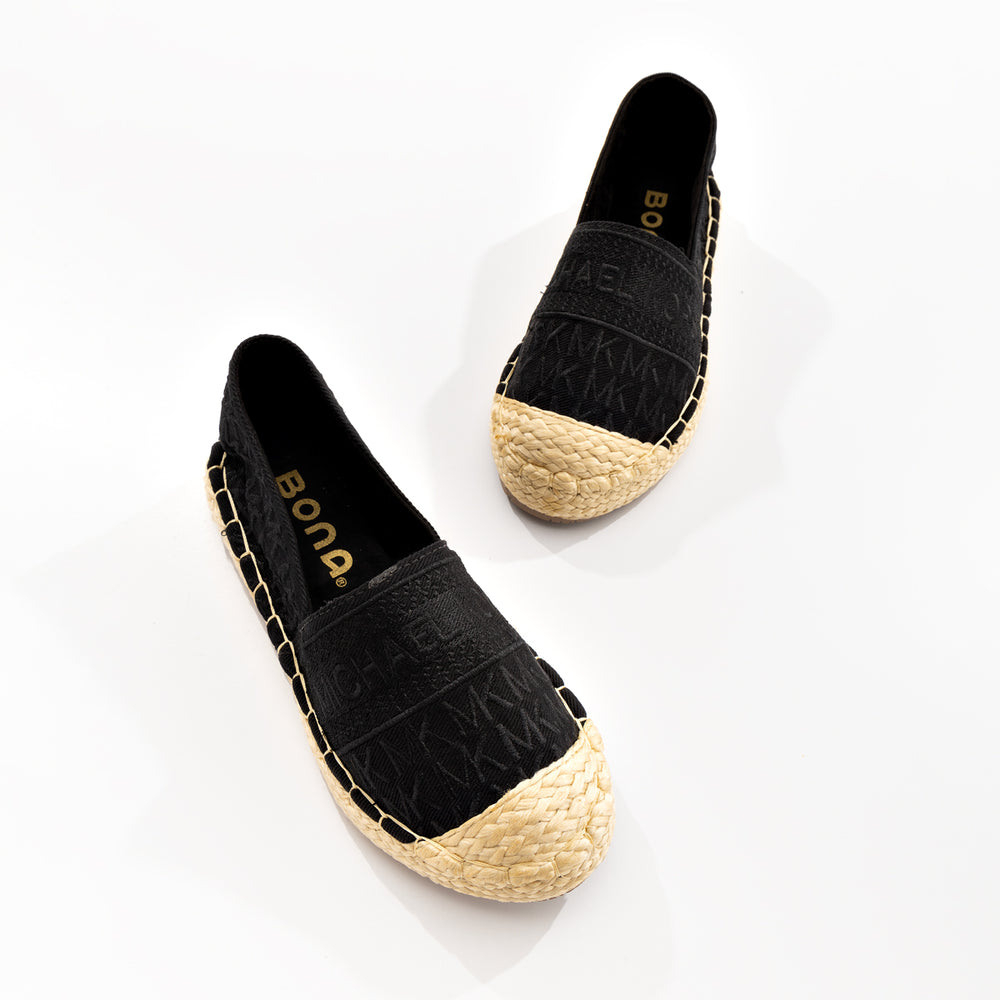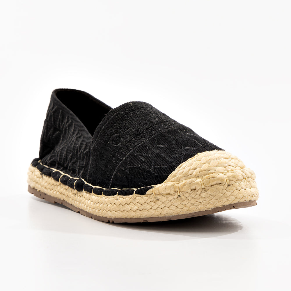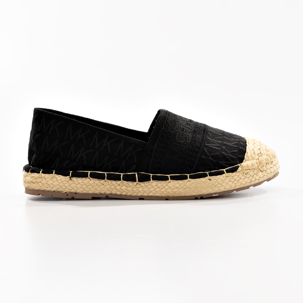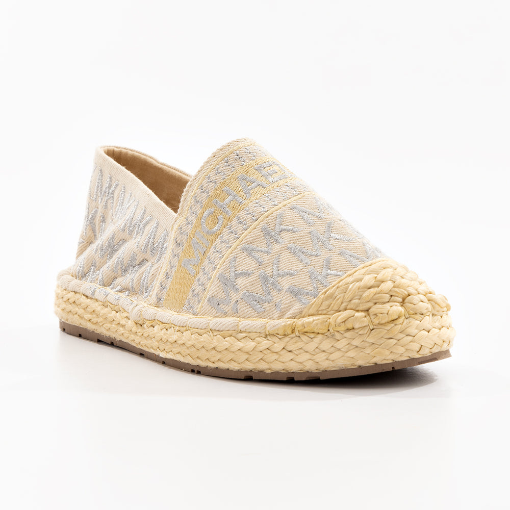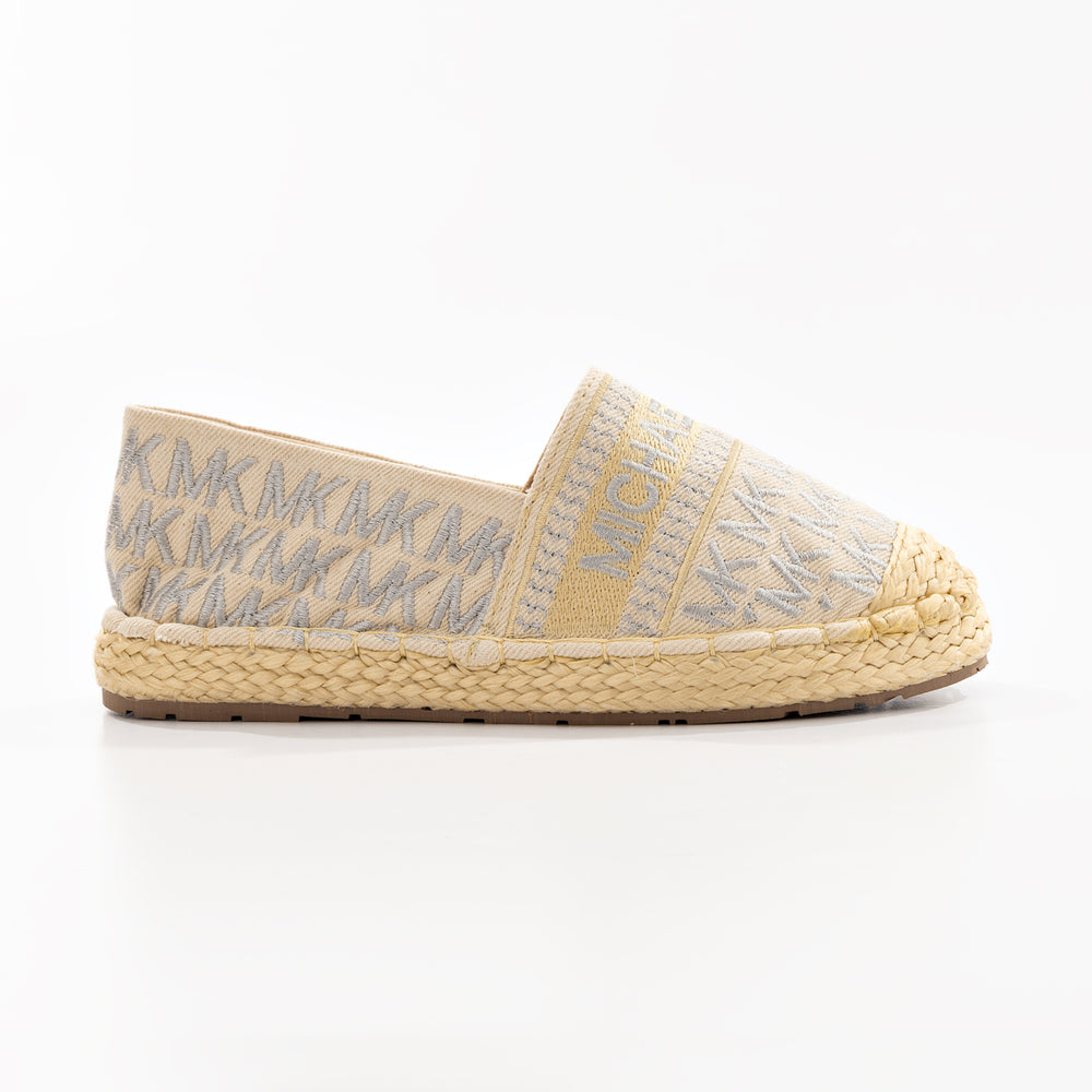 Alpargatas de moda para mujer, refresca tu estilo con estas alpargatas Michael Kors, diseñadas para brindar comodidad y sofisticación en cada paso. Confeccionadas en lona textil con el icónico monograma "MK" en tonos neutros, cuentan con detalles bordados y una suela de yute natural que aporta un aire bohemio y veraniego.