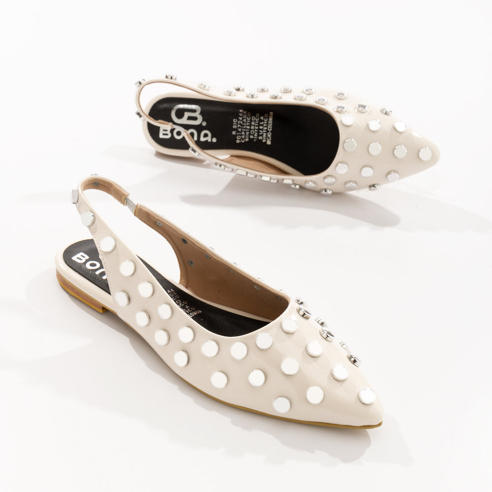 Baletas de moda para mujer, con delicados taches y correa en el talón que aportan un equilibrio...