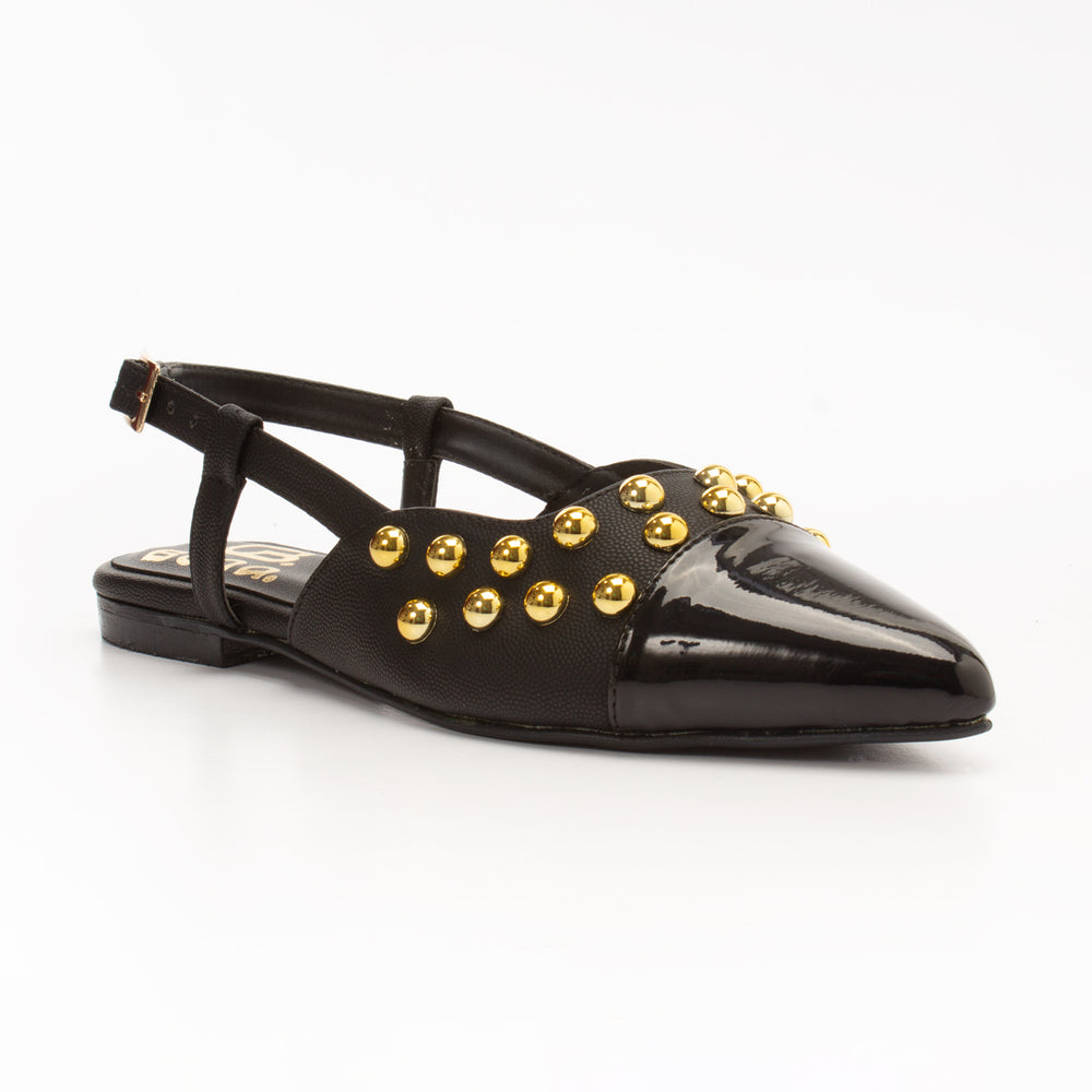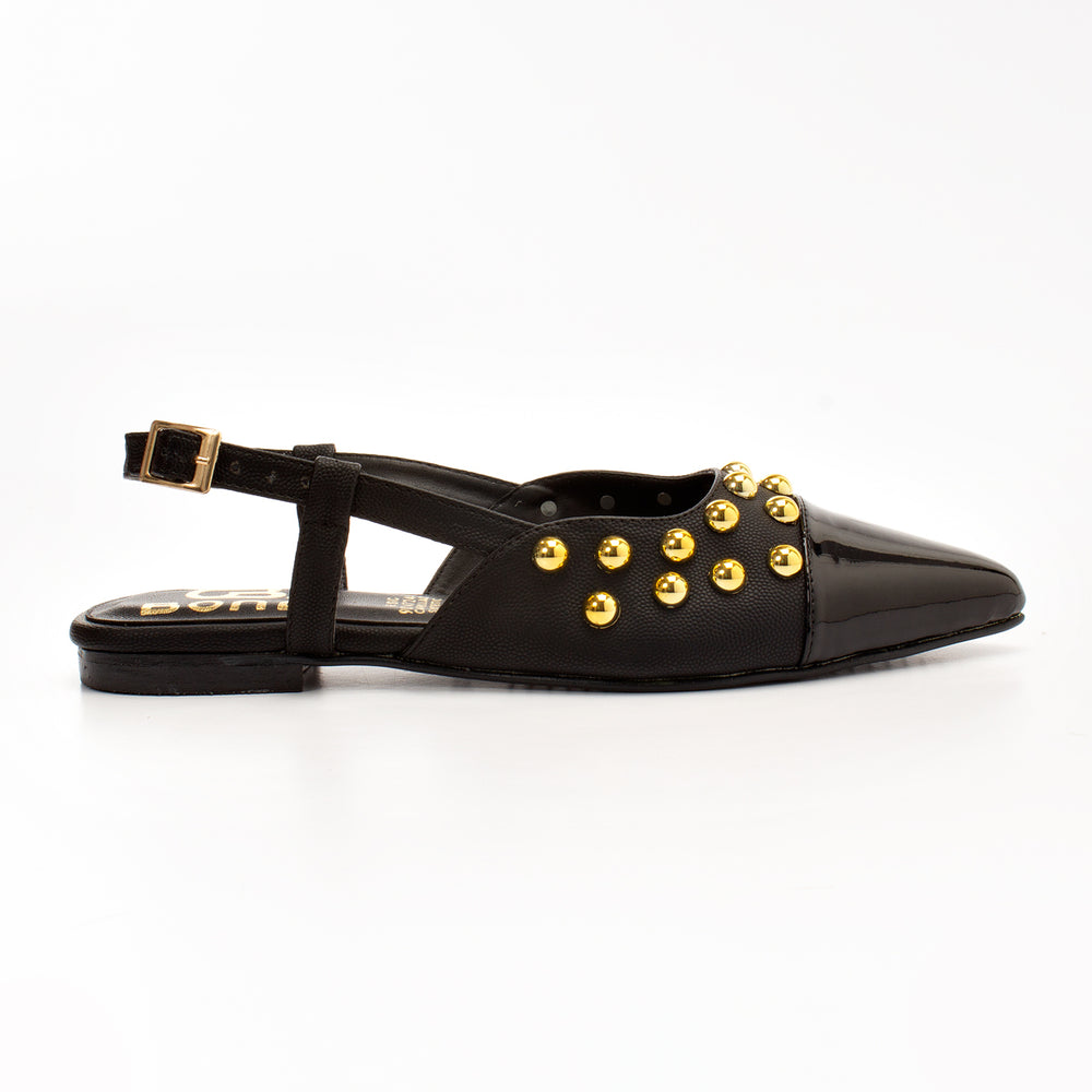Baletas de moda para mujer, en punta con correa para mayor confort. Llegó la hora de los taches dorados, vas a lucir como una experta en moda, y harás brillar todos tus looks.