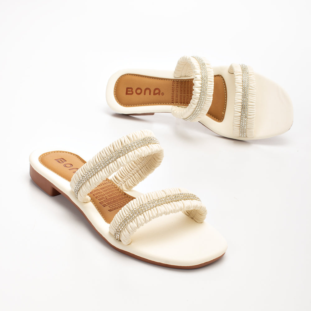 Sandalia plana de moda para mujer, con detalles en encapellada de murano y estilo acordeón que harán...