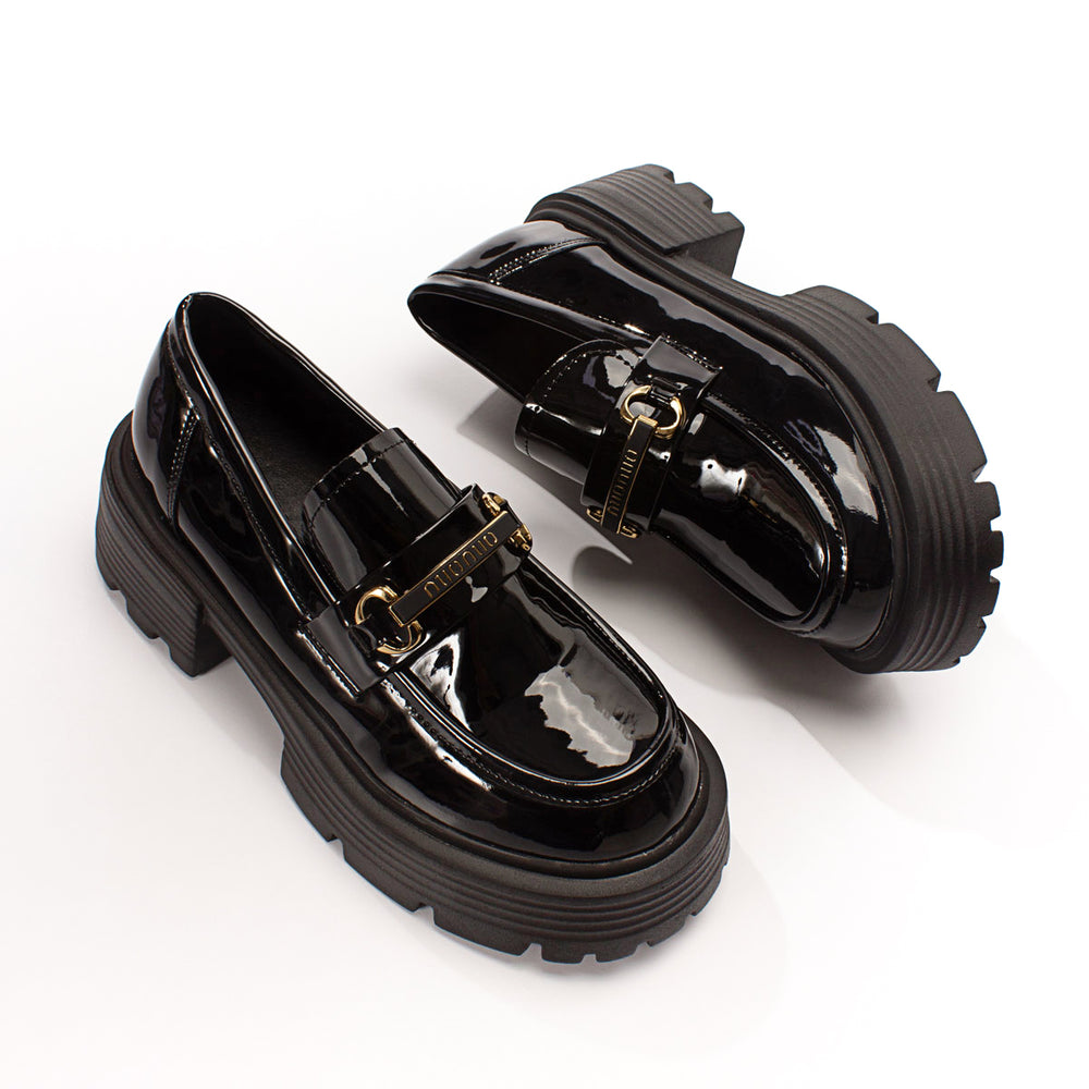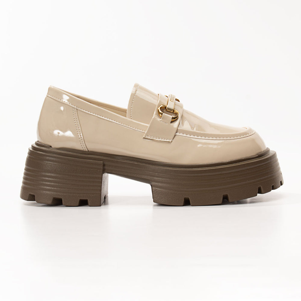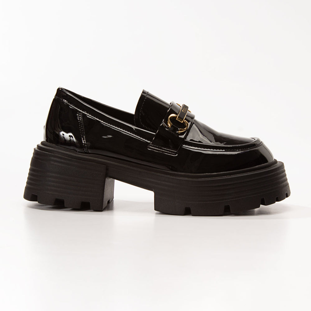 Mocasín de moda para mujer, suela tipo track y accesorio en capellada XL en material en charol...