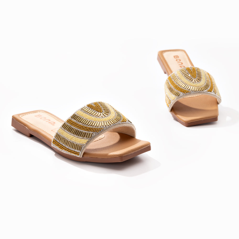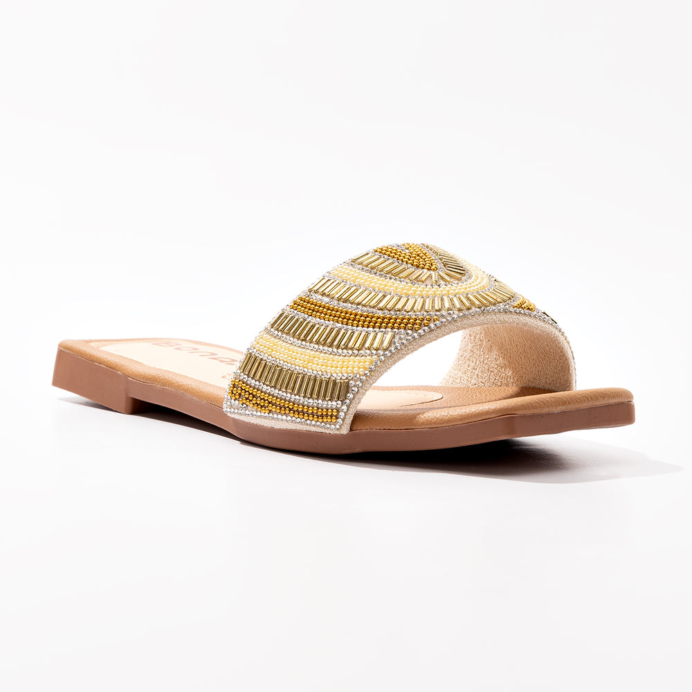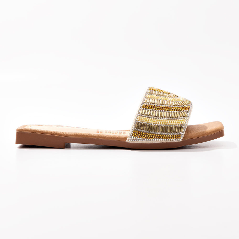 Sandalia plana de moda para mujer, con detalles en encapellada de murano que hará relucir tus outfits...
