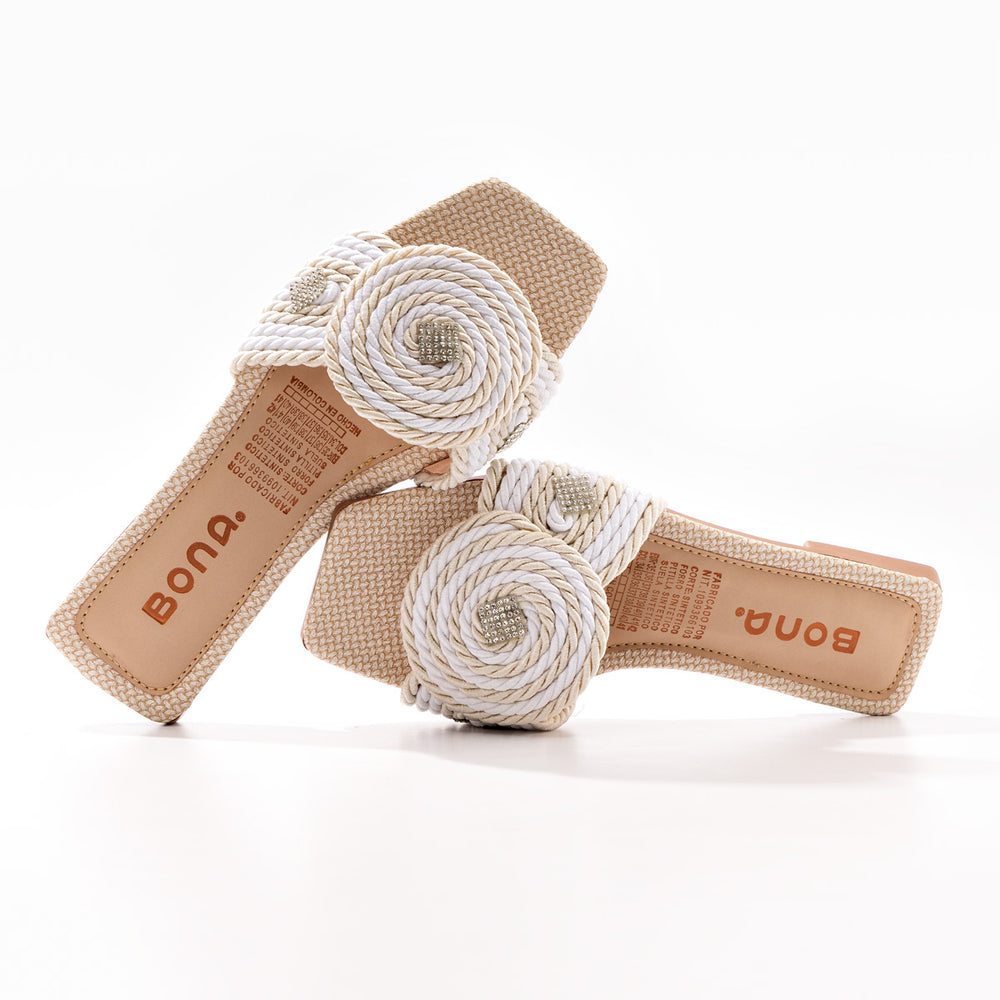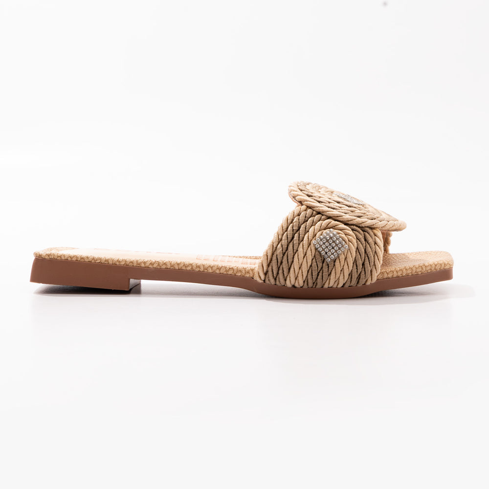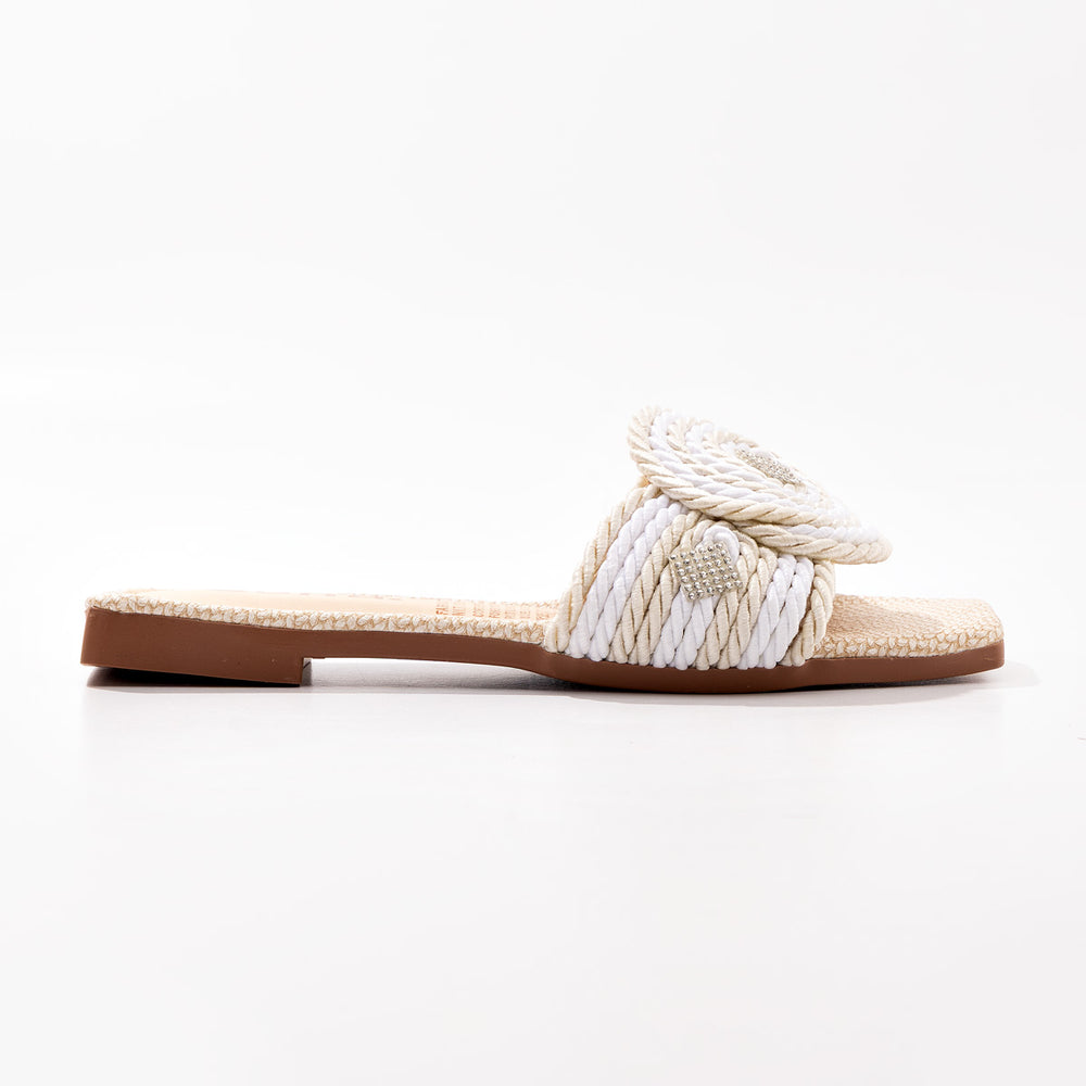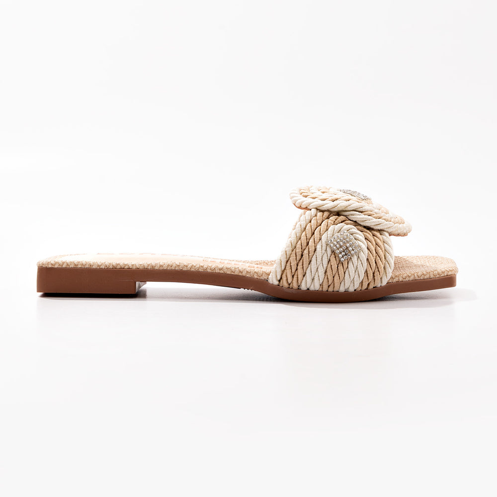 Sandalia plana de moda para mujer, Estas sandalias destacan por su diseño artesanal y bohemio, ideales para un estilo relajado y natural. Su estructura combina materiales y texturas que evocan un aire fresco y veraniego, siendo perfectas para climas cálidos y ocasiones informales con un toque sofisticado.