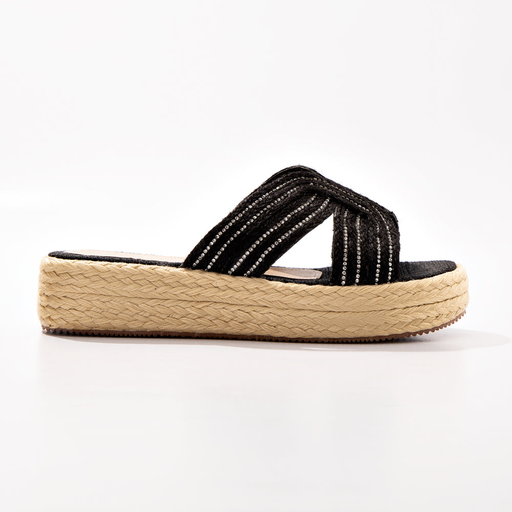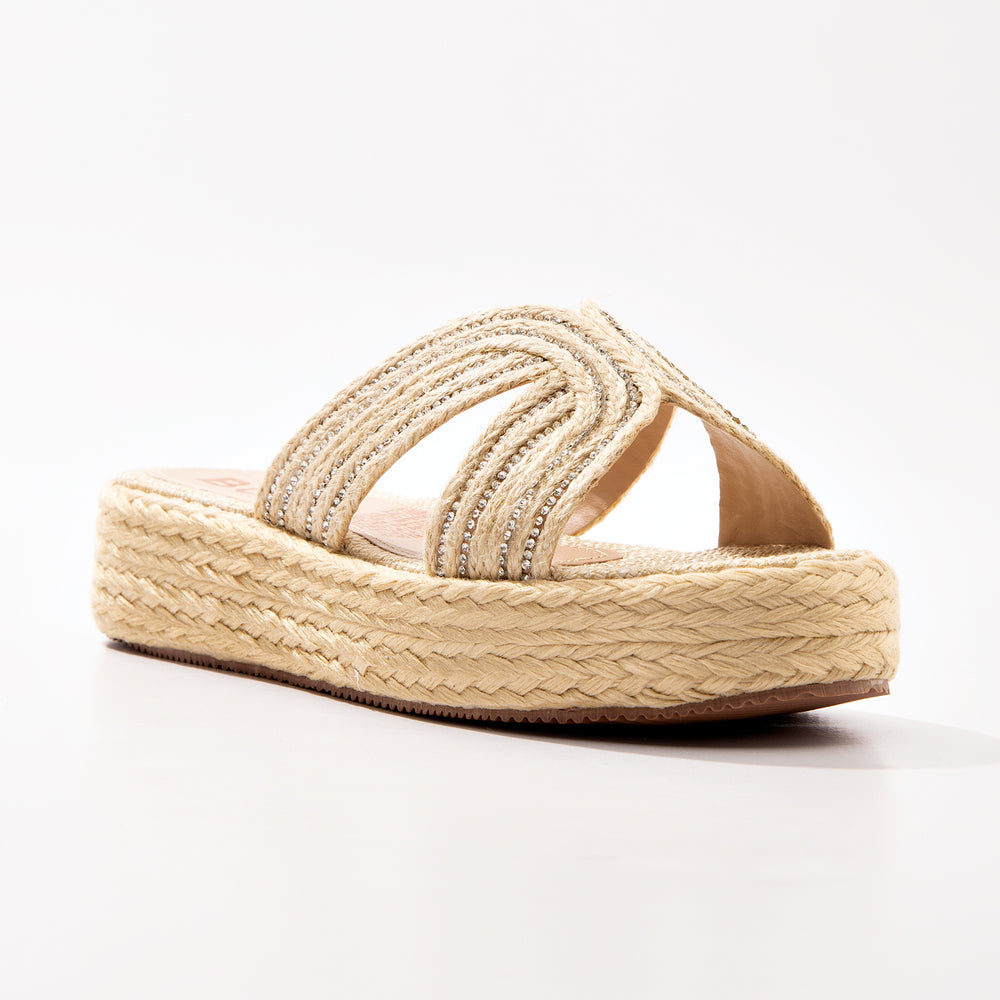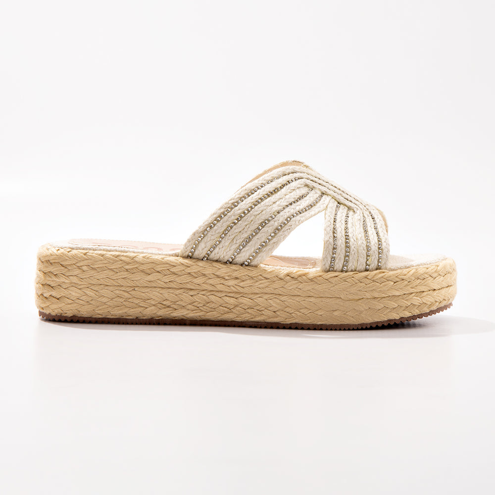 Sandalias de moda para mujer, con plataforma en yute, capellada con adornos artesanales, ideales para quienes aman estar cómodas y frescas.