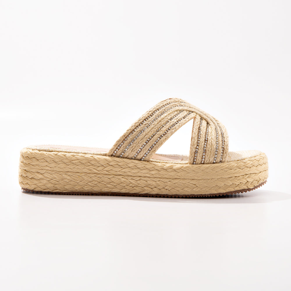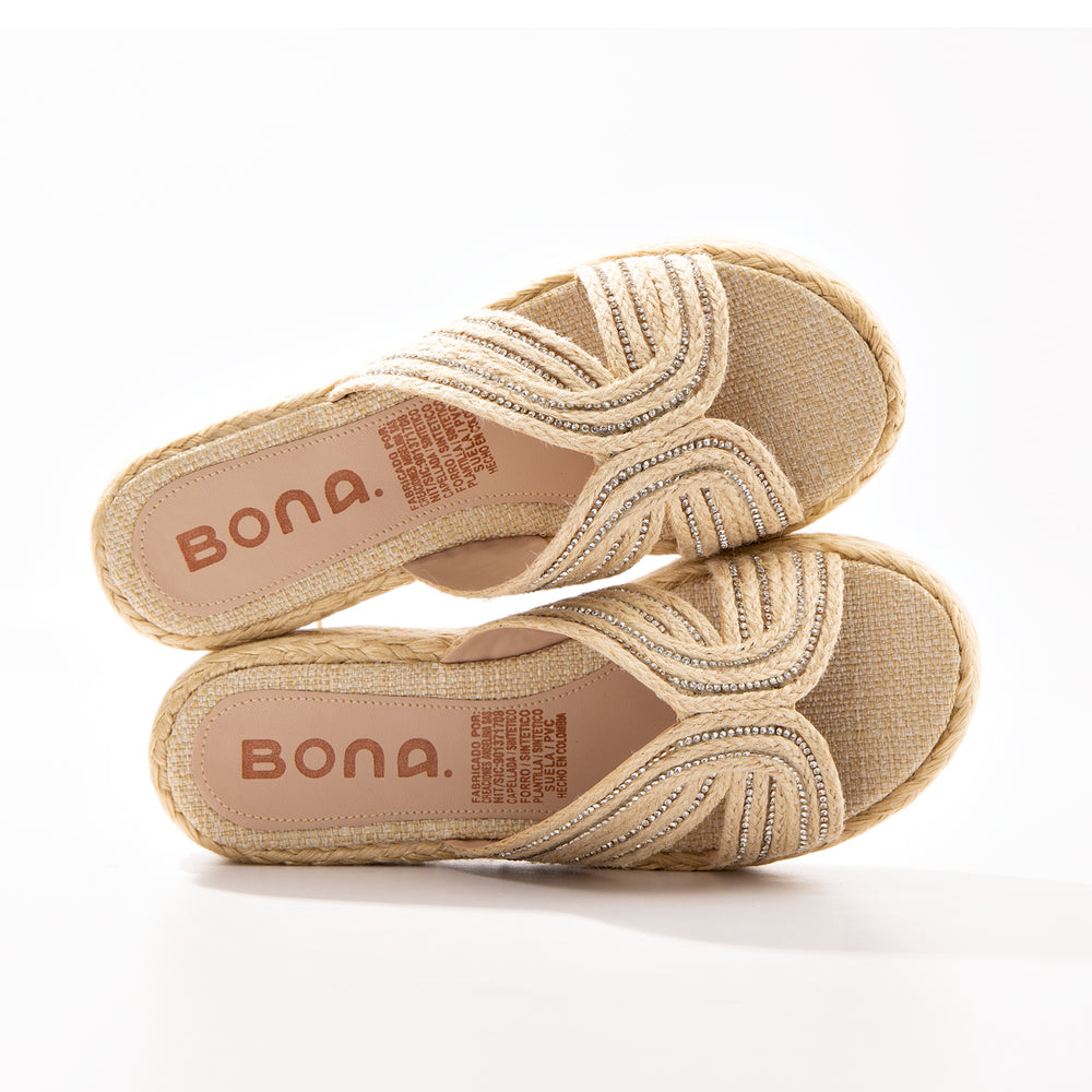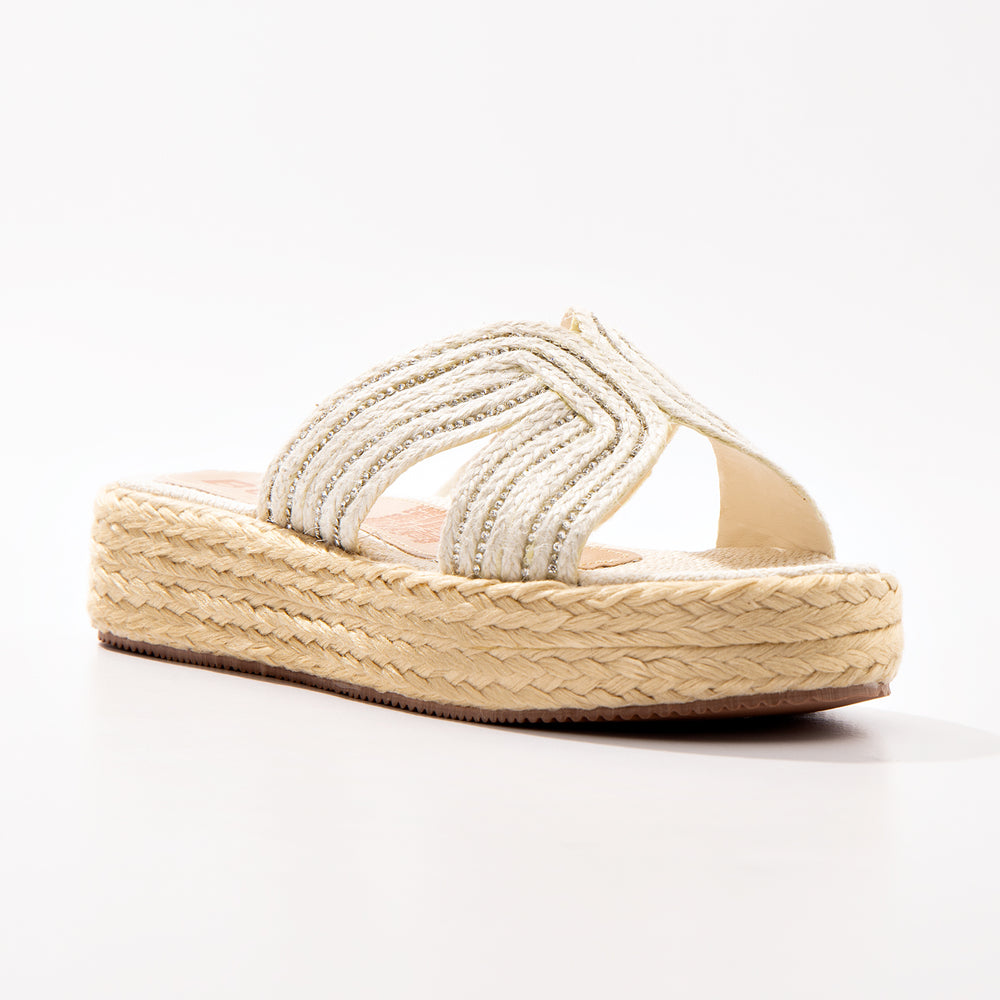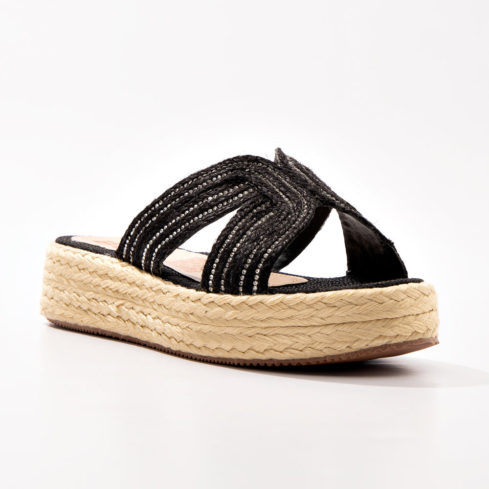 Sandalias de moda para mujer, con plataforma en yute, capellada con adornos artesanales, ideales para quienes aman estar cómodas y frescas.