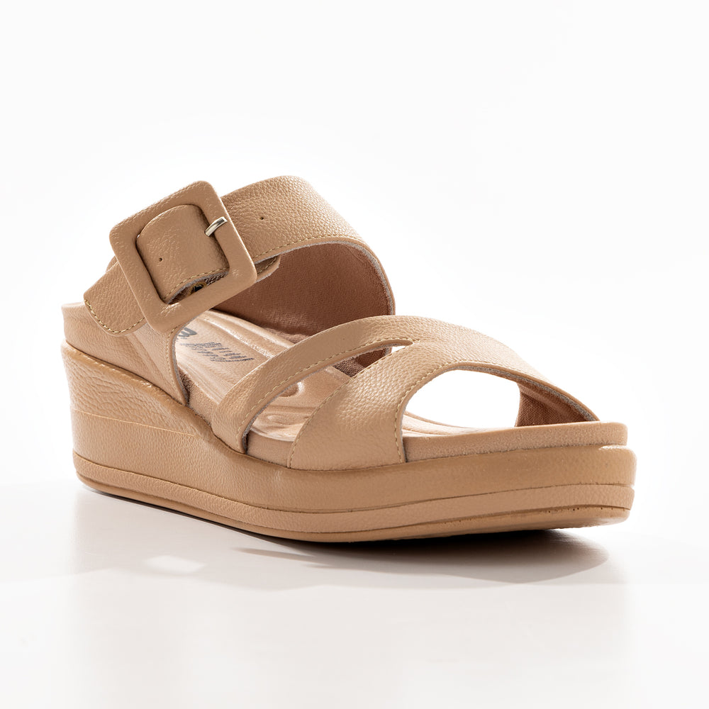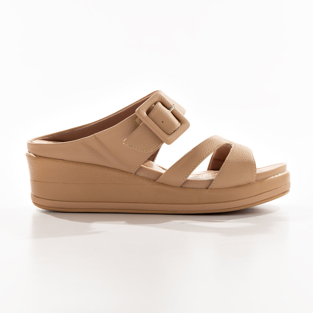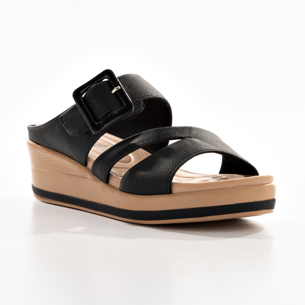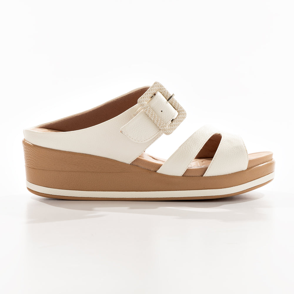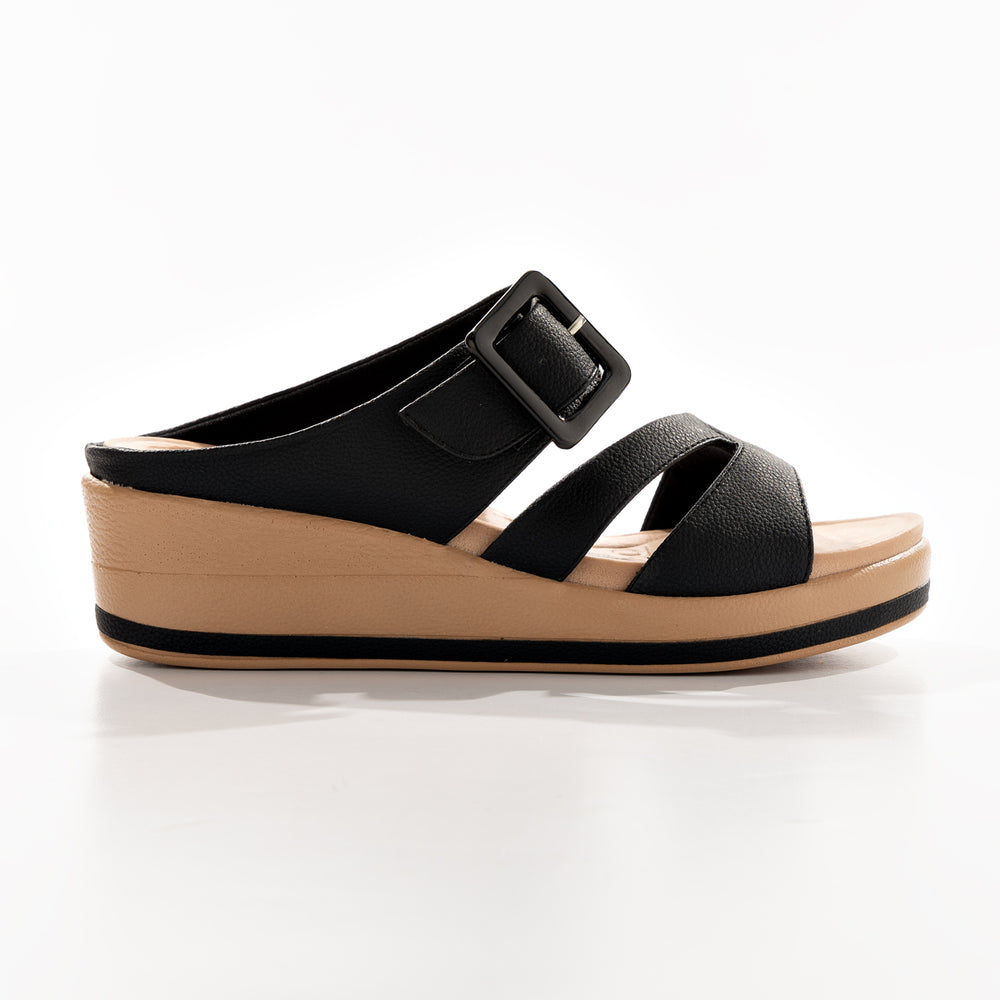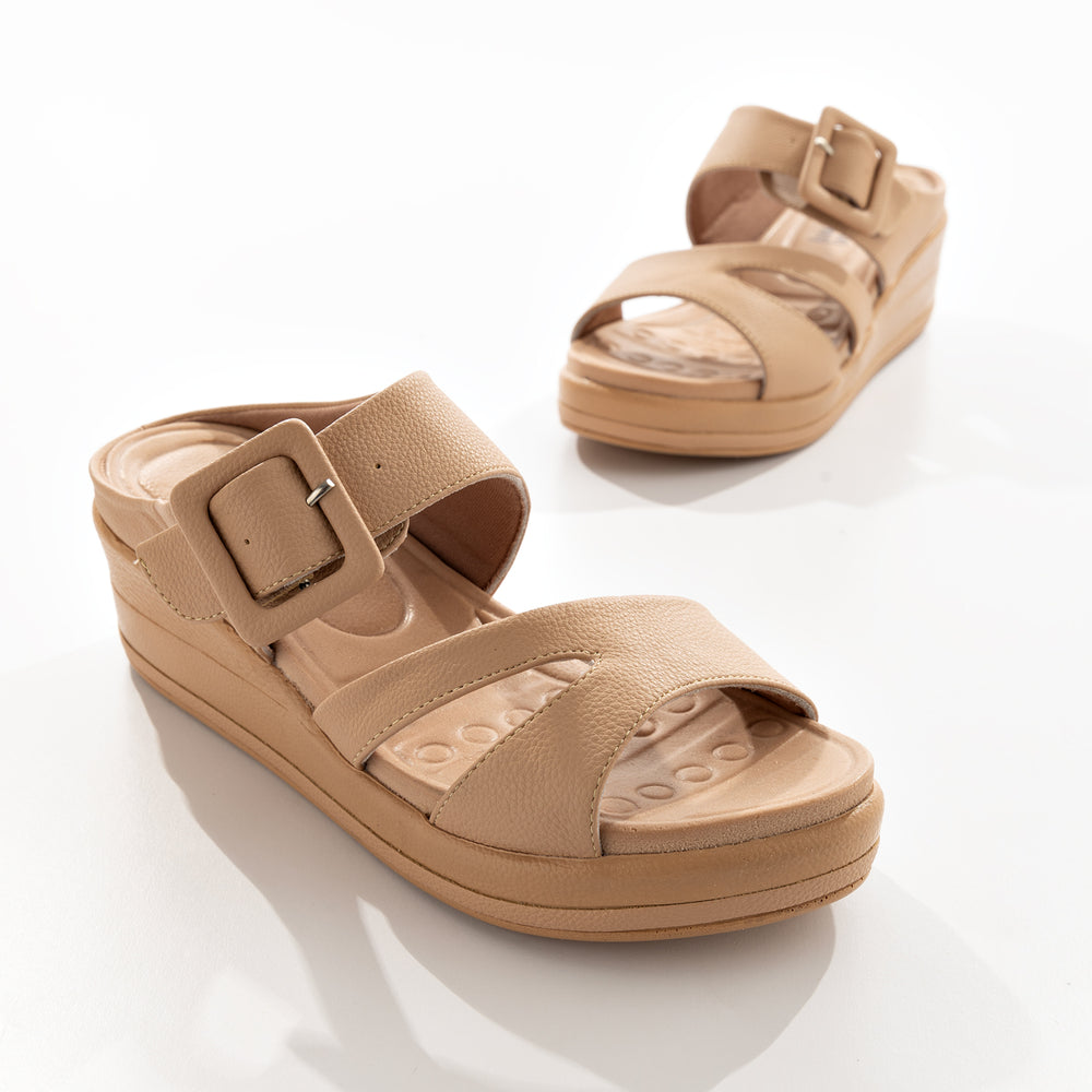 Sandalia de moda para mujer, cuenta con una plantilla ergonómica, doble correa ancha para mayor ajuste y una hebilla decorativa que resalta el diseño.