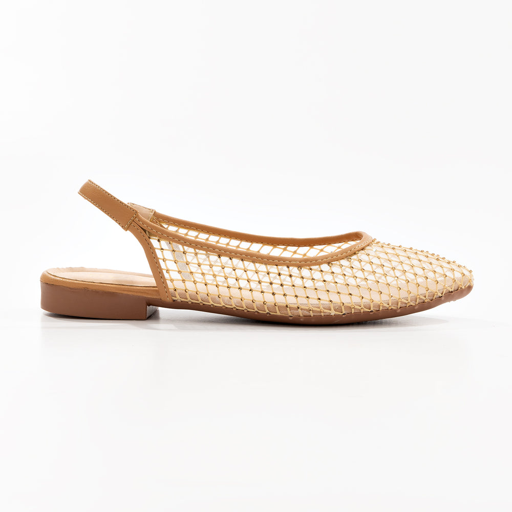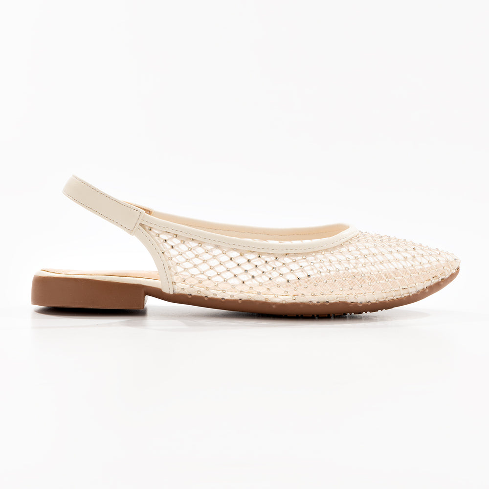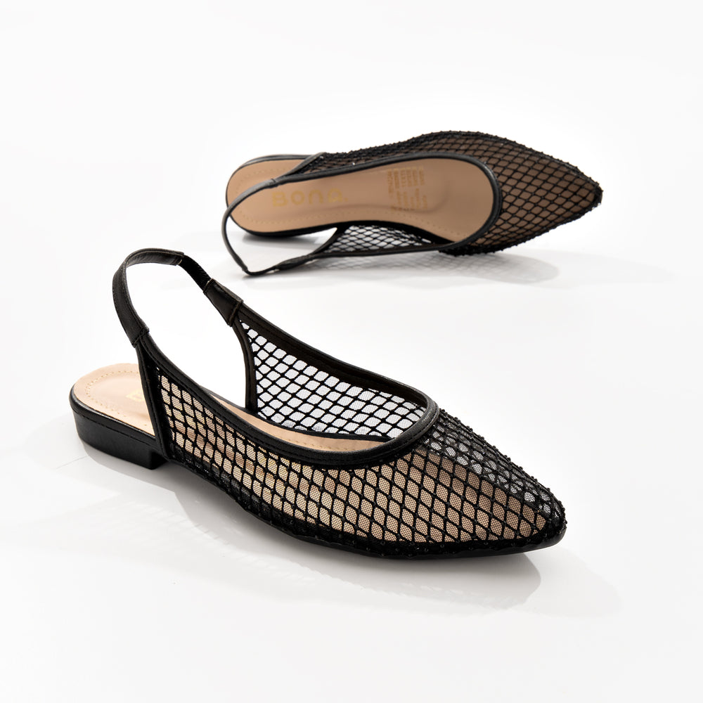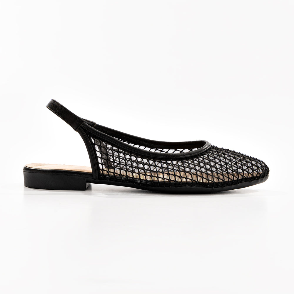Baletas de moda para mujer, son la combinación perfecta entre frescura y elegancia. Su diseño en malla con textura de rombos ofrece una apariencia ligera y moderna, ideal para los días cálidos. El talón abierto con correa elástica asegura un calce cómodo y práctico.