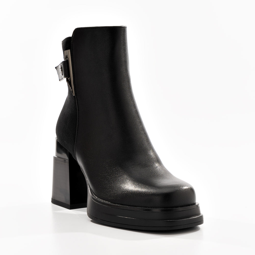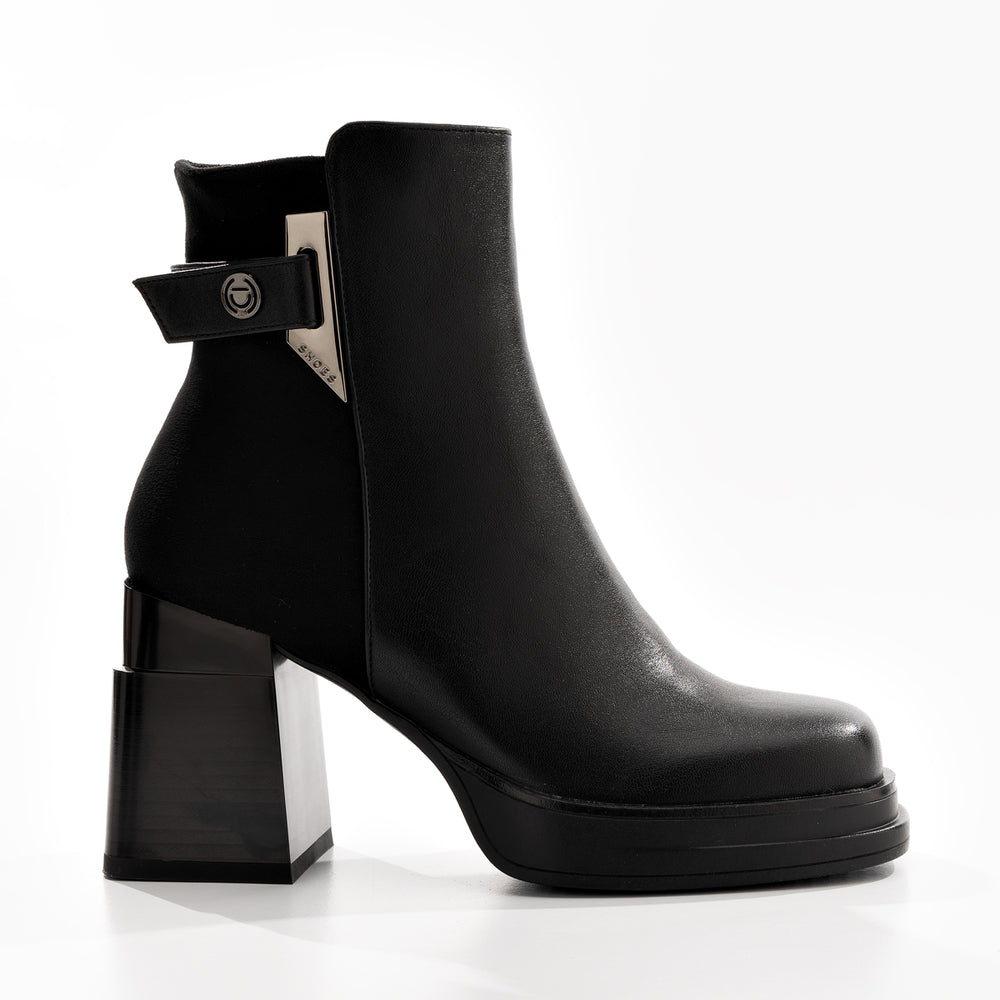 Botin de moda para mujer, Estas botas de estilo urbano están confeccionadas en material sintético de color negro con acabado mate, aportan un toque distintivo y elegante.