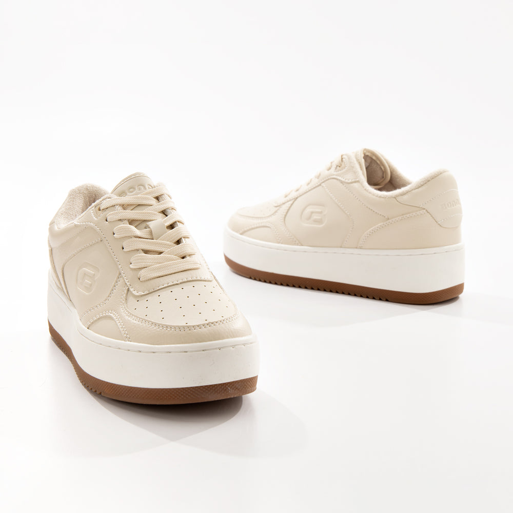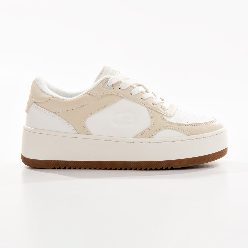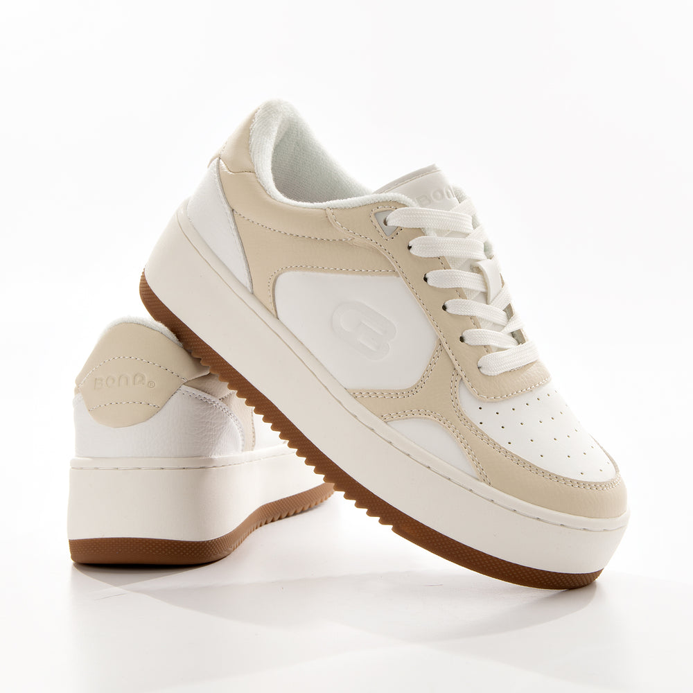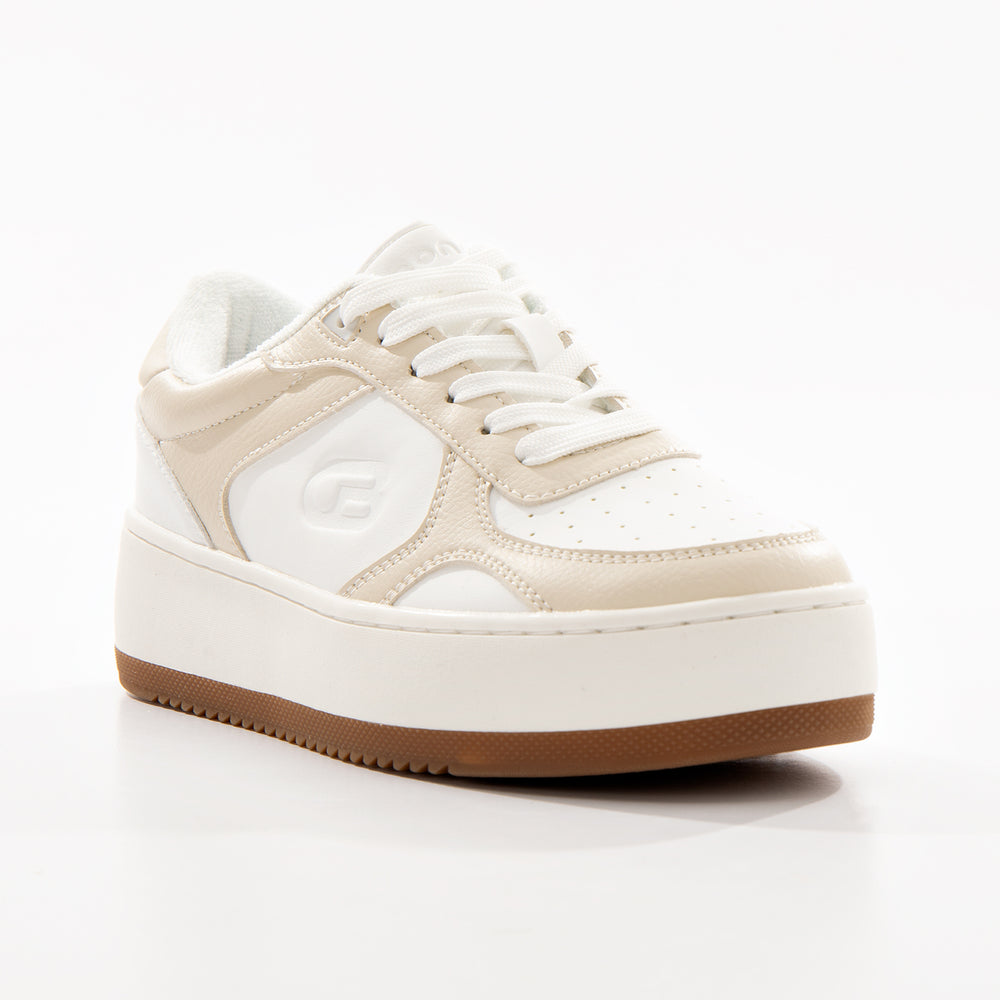 Tenis de moda para mujer, con un diseño moderno y elegante destacan por su combinación de colores beige x blanco y blanco, una paleta que transmite frescura, sofisticación y versatilidad.