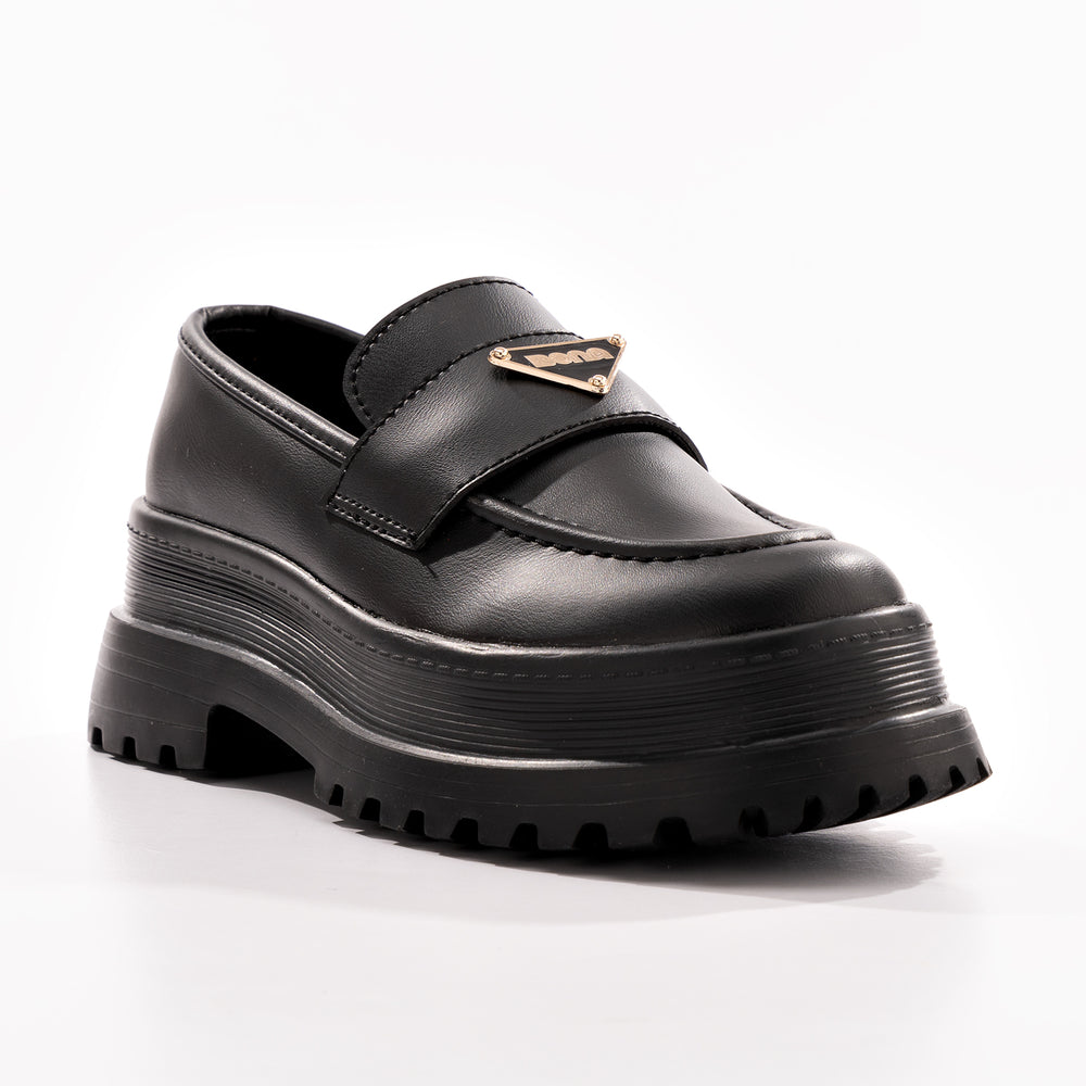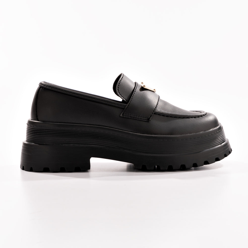 Mocasin de moda para mujer, mocasines chunky en negro: elegantes, robustos y llenos de actitud. Su diseño sin cordones y el detalle metálico dorado los hacen tan prácticos como sofisticados.