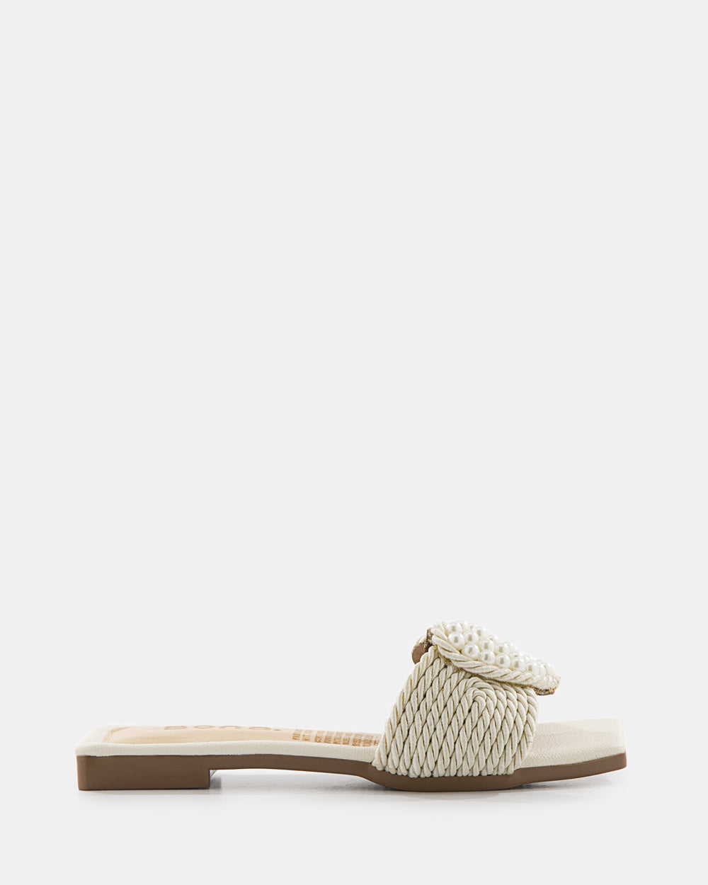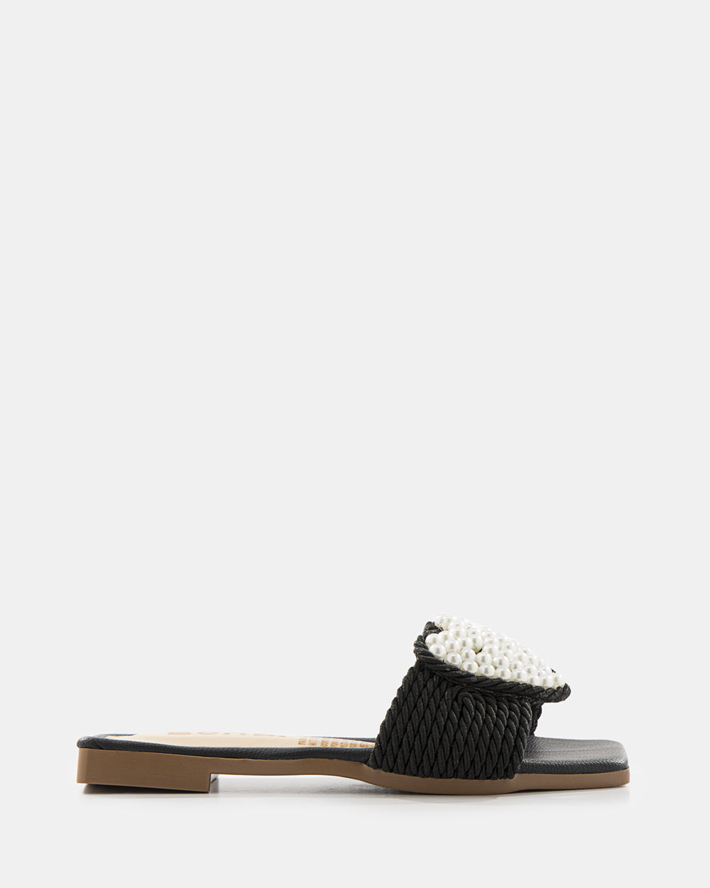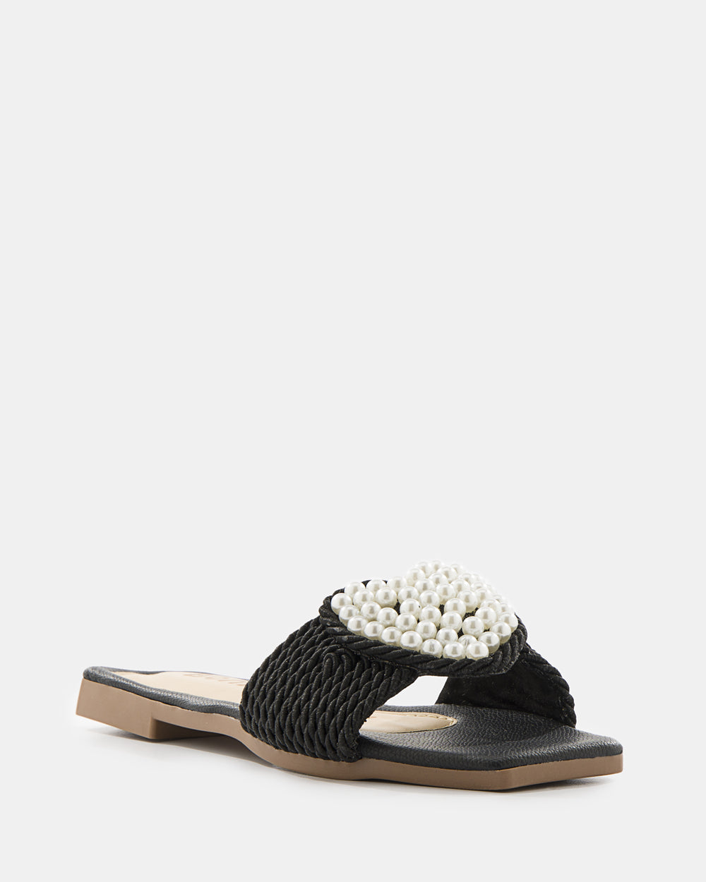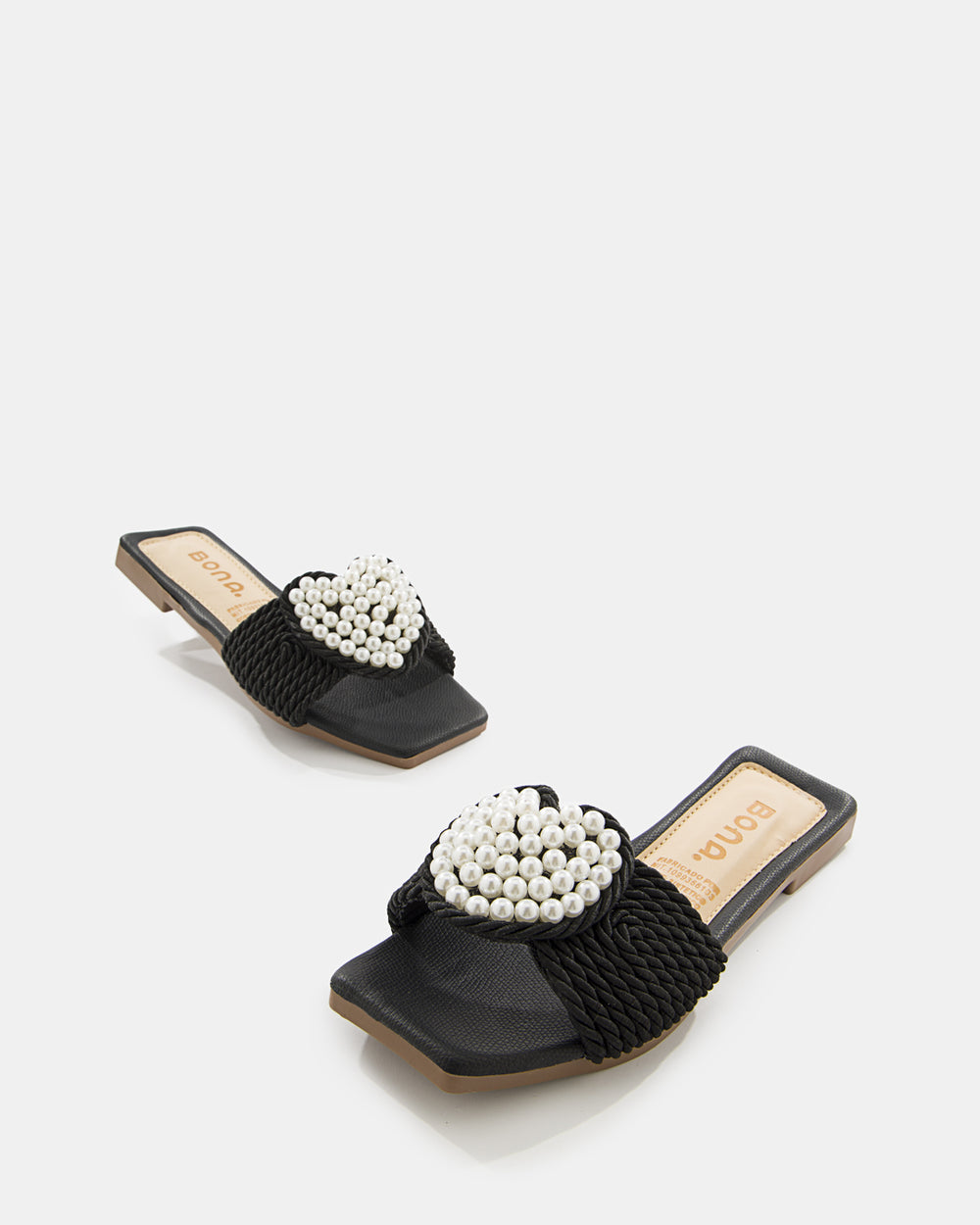 Sandalia slide de diseño artesanal que combina tejido de rafia con aplicaciones de perlas. El detalle floral con perlas y el tejido trenzado crean una pieza statement perfecta para la mujer que busca sofisticación bohemia y comodidad absoluta.