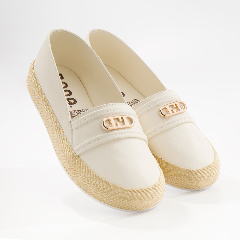 Descubre la elegancia casual-chic con estas sofisticadas zapatillas loafer de plataforma. Su diseño slip-on combina la comodidad de una zapatilla deportiva con la elegancia de un loafer clásico, mientras que la plataforma de yute trenzado y la hebilla dorada añaden ese toque de lujo relajado perfecto para la mujer moderna