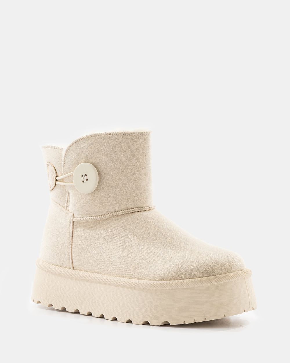 Descubre la esencia del confort invernal con nuestras botas bajas con botón decorativo. Diseñadas para quienes buscan un calzado versátil que combina funcionalidad y estilo minimalista. La elección perfecta para quienes buscan un calzado invernal que se adapta sin esfuerzo a cualquier look casual, combinando calidez y diseño contemporáneo refinado.