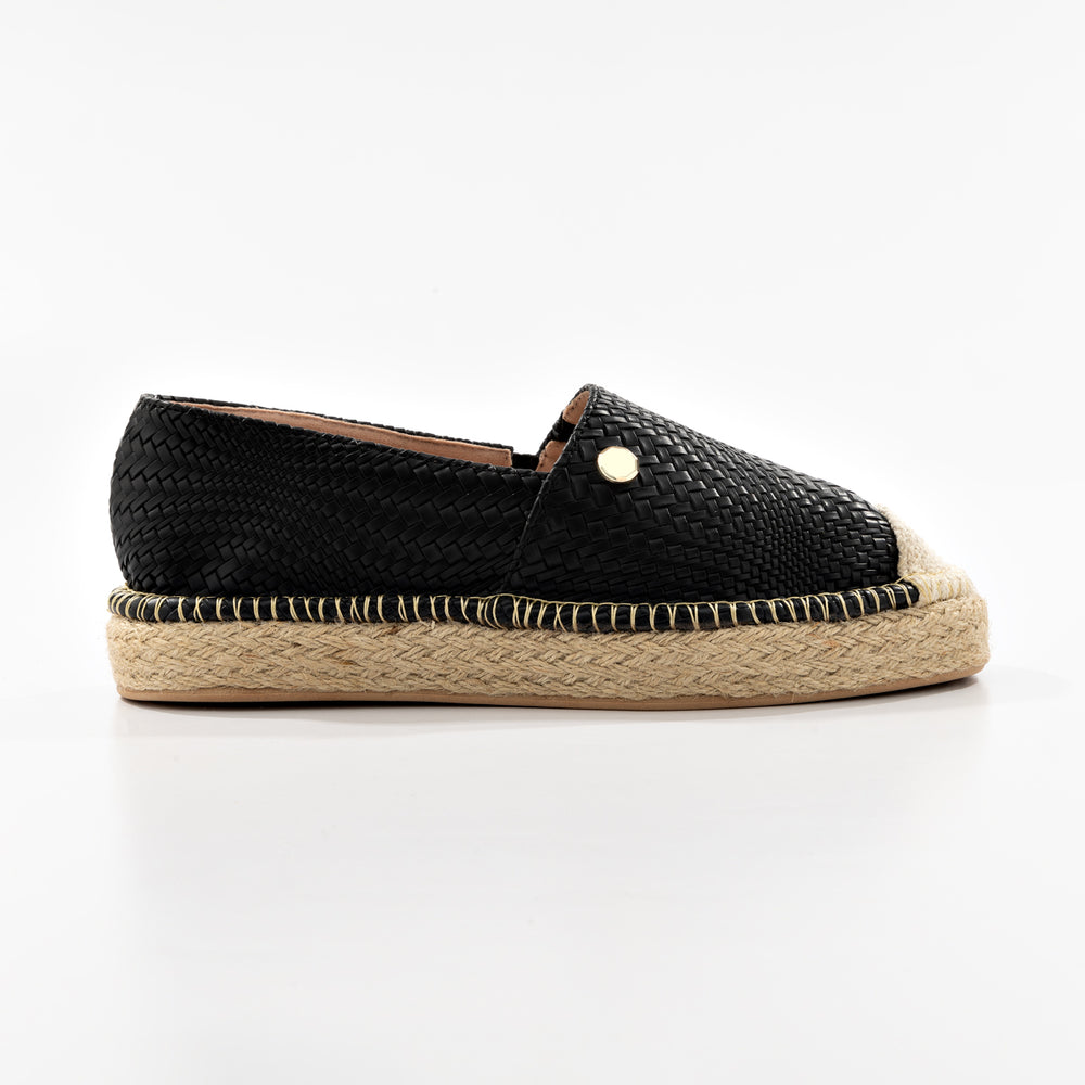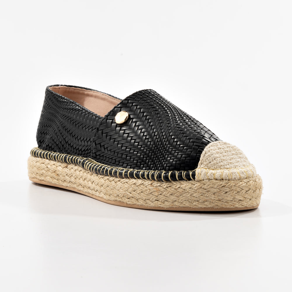 Baleta de moda para mujer, confeccionada en lona de alta calidad con acabado liso. Destaca por su...