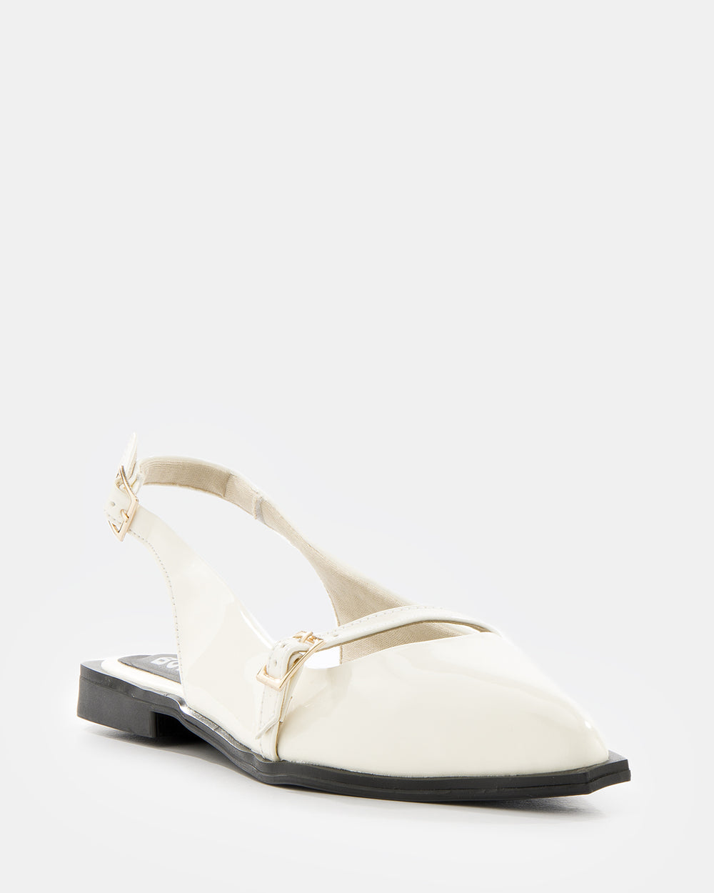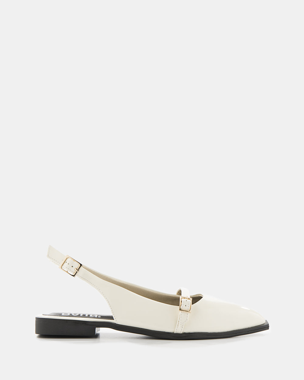 Baletas destalonadas elegantes con diseño minimalista y sofisticado. Puntera cuadrada moderna que sigue las tendencias actuales. Detalle de hebilla dorada decorativa en el empeine que aporta un toque de distinción. Talonera ajustable con elástico para calce perfecto y comodidad. Tacón bajo cuadrado que brinda estabilidad durante todo el día. Confeccionadas en material sintético de alta calidad.