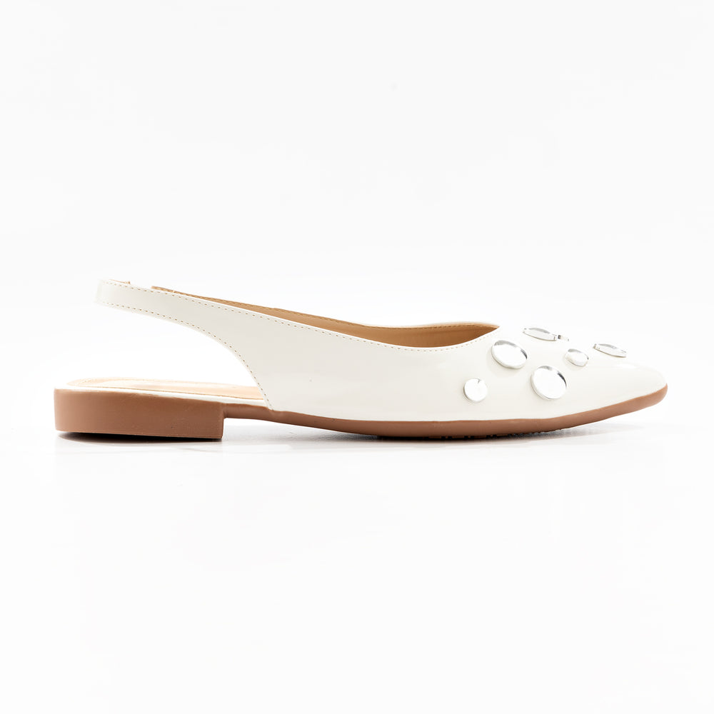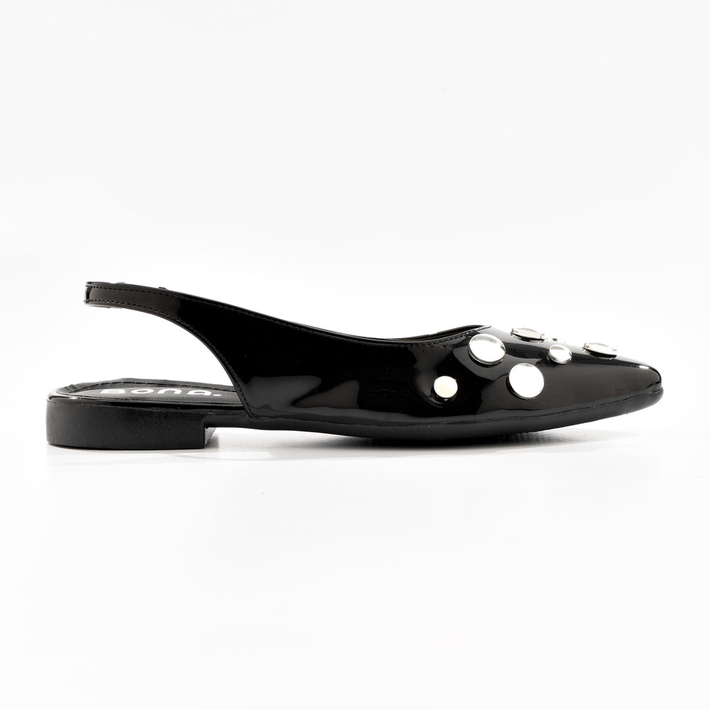 Baletas slingback de diseño sofisticado en cuero sintético premium de alta calidad con elegantes detalles metálicos circulares que aportan un toque moderno y distintivo. Perfectas para looks formales y casuales elegantes.