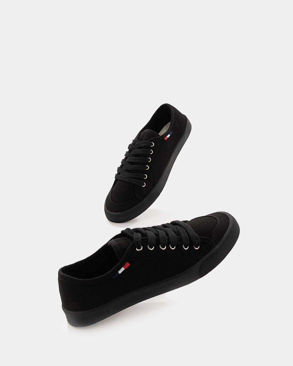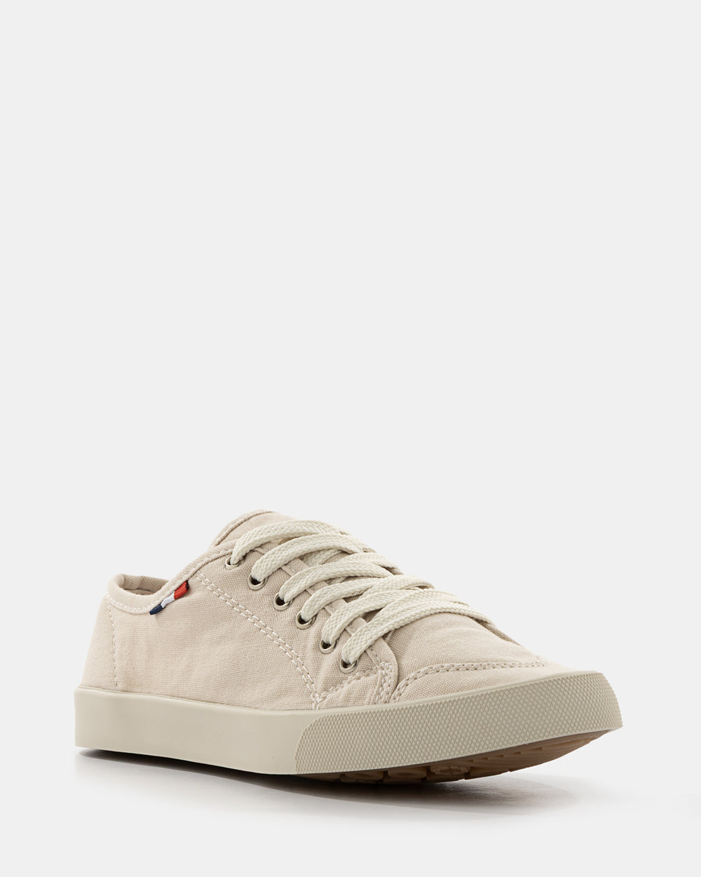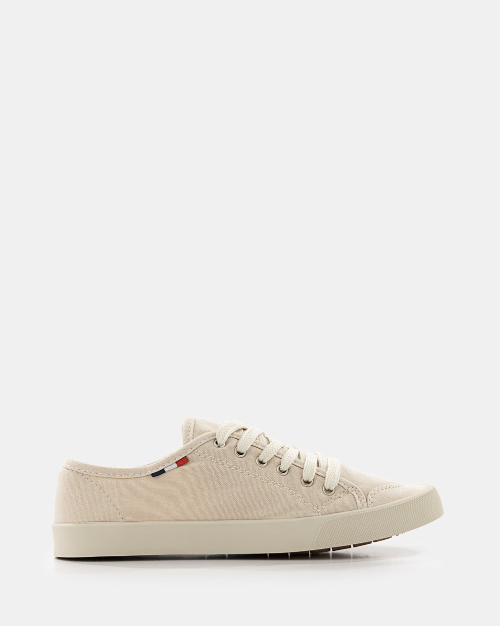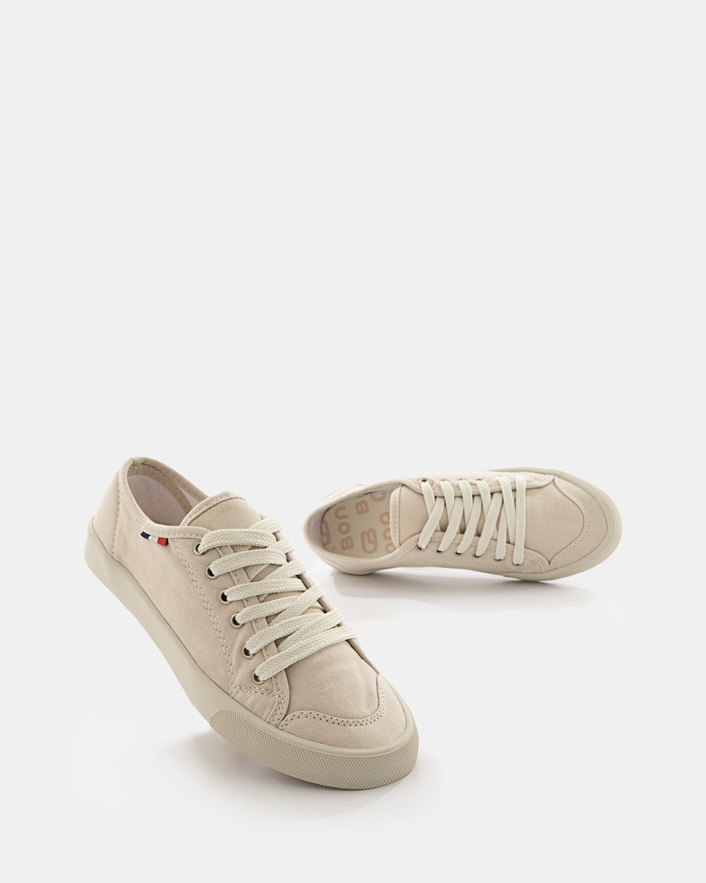 Tenis casual tipo sneaker producido en canvas de alta densidad en blanco total con aplicaciones bordadas. Manufacturado con upper de lona resistente al desgaste, revestimiento interior transpirable, plantilla extraíble con soporte de arco y base de goma inyectada antideslizante en blanco. Incluye cordones redondos en blanco. Estilo clásico de inspiración vintage con silueta esbelta y construcción ligera.
