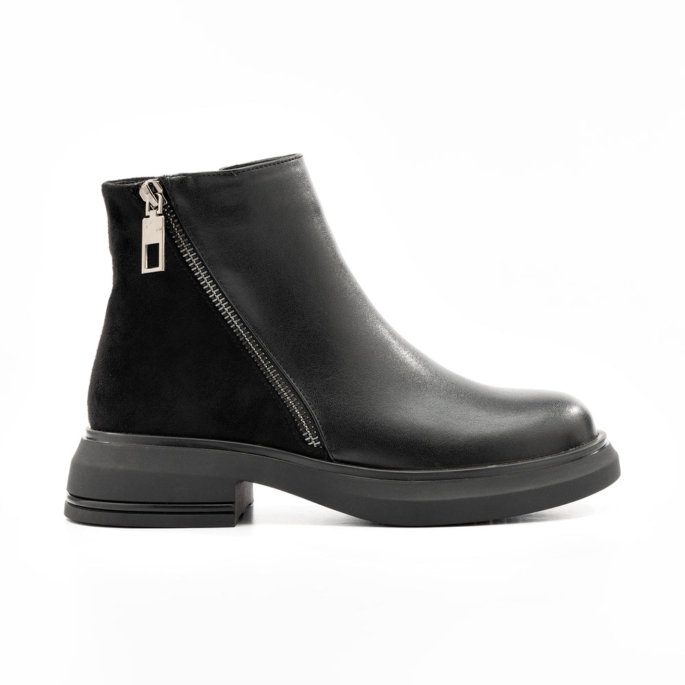 Botines de moda para mujer, en material sinetico de primera calidad con acabado liso, suela en goma resistente con diseño antideslizante y forro interior en material textil suave y transpirable.