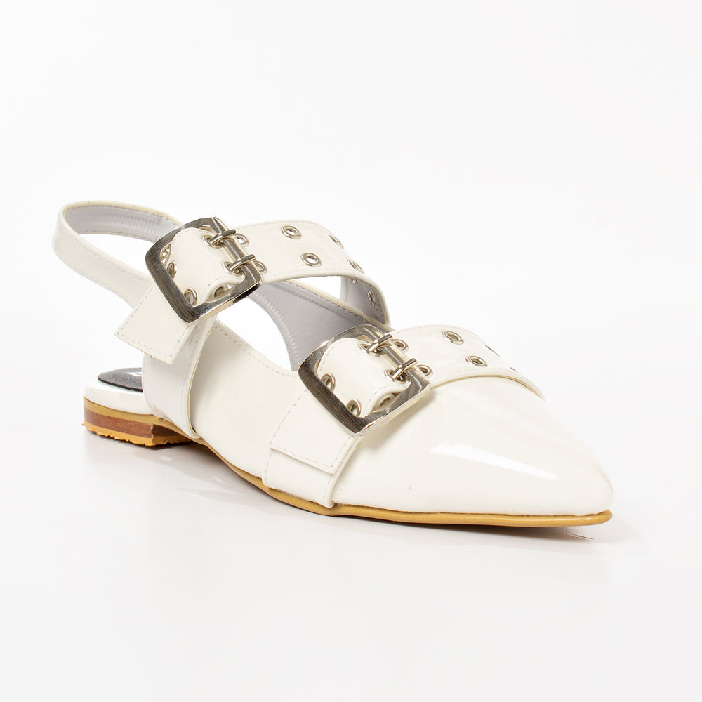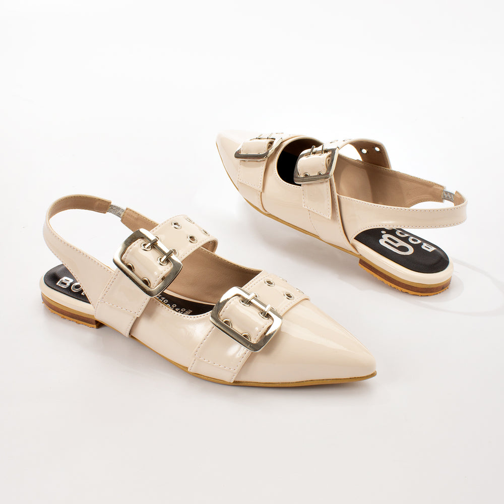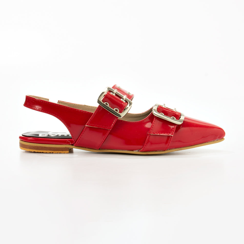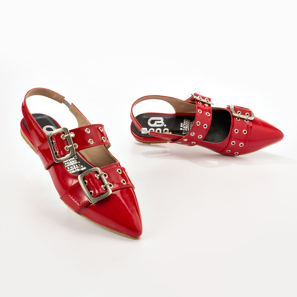 Baleta bailarina con correas, herrajes y ojales para tener el mayor estilo. Encontrarás estas hermosas bailarinas en lo más alto de las tendencias y ojalá en tu clóset en todos sus colores: beige, negro y rojo.