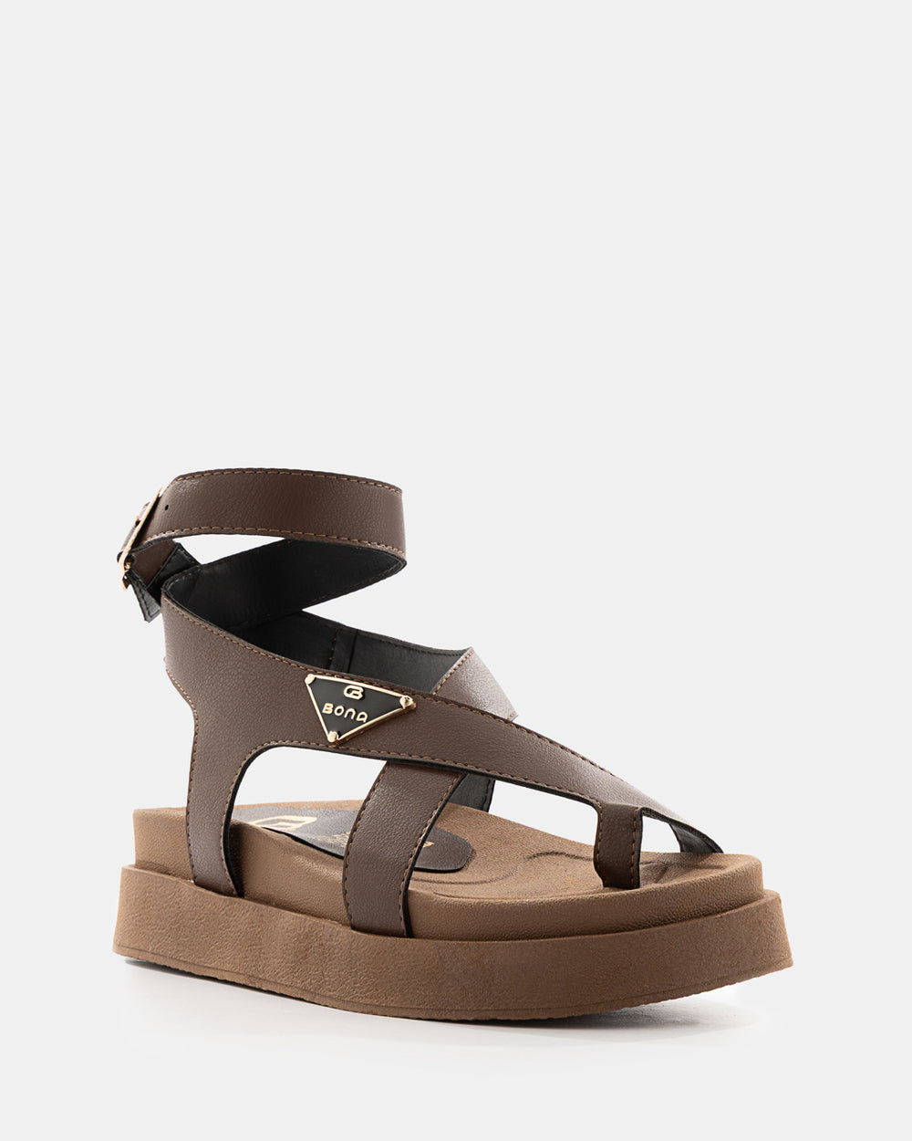 Sandalia de estilo urbano, diseñada con tiras anchas cruzadas que brindan un ajuste firme y cómodo. Incorpora una correa ajustable con hebilla metálica para un calce personalizado. La suela gruesa en color negro aporta un contraste moderno, además de mayor estabilidad, amortiguación y confort en cada paso.