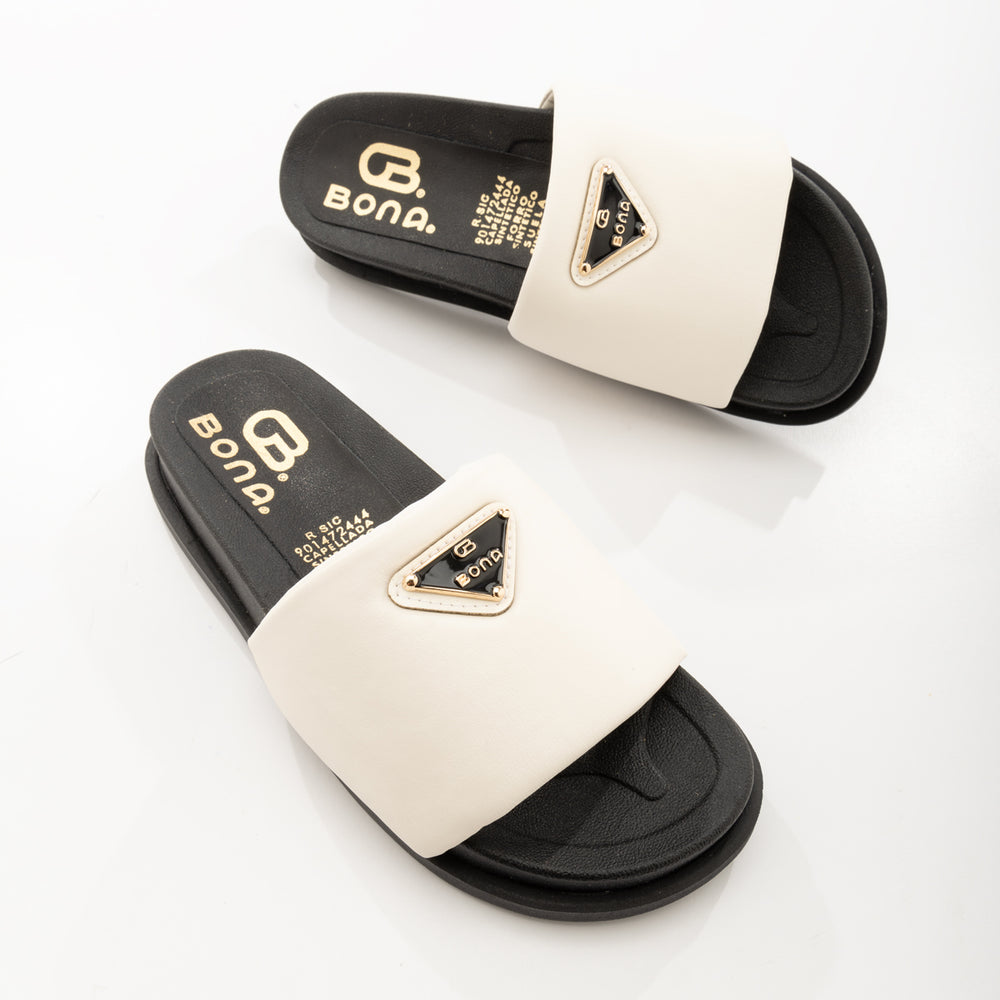 Sandalias planaformas de moda para mujer, con accesorio xl, en cuero sintético. En colores neutros como el...