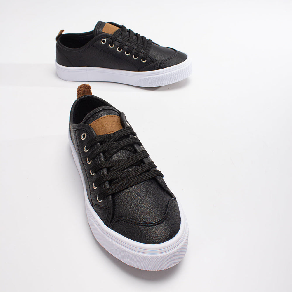 Tenis básicos y cómodos de moda para mujer acompañados de un diseño clásico en tono neutros como el negro, blanco y blanco hueso. Justo para tus looks más casuales del día a día