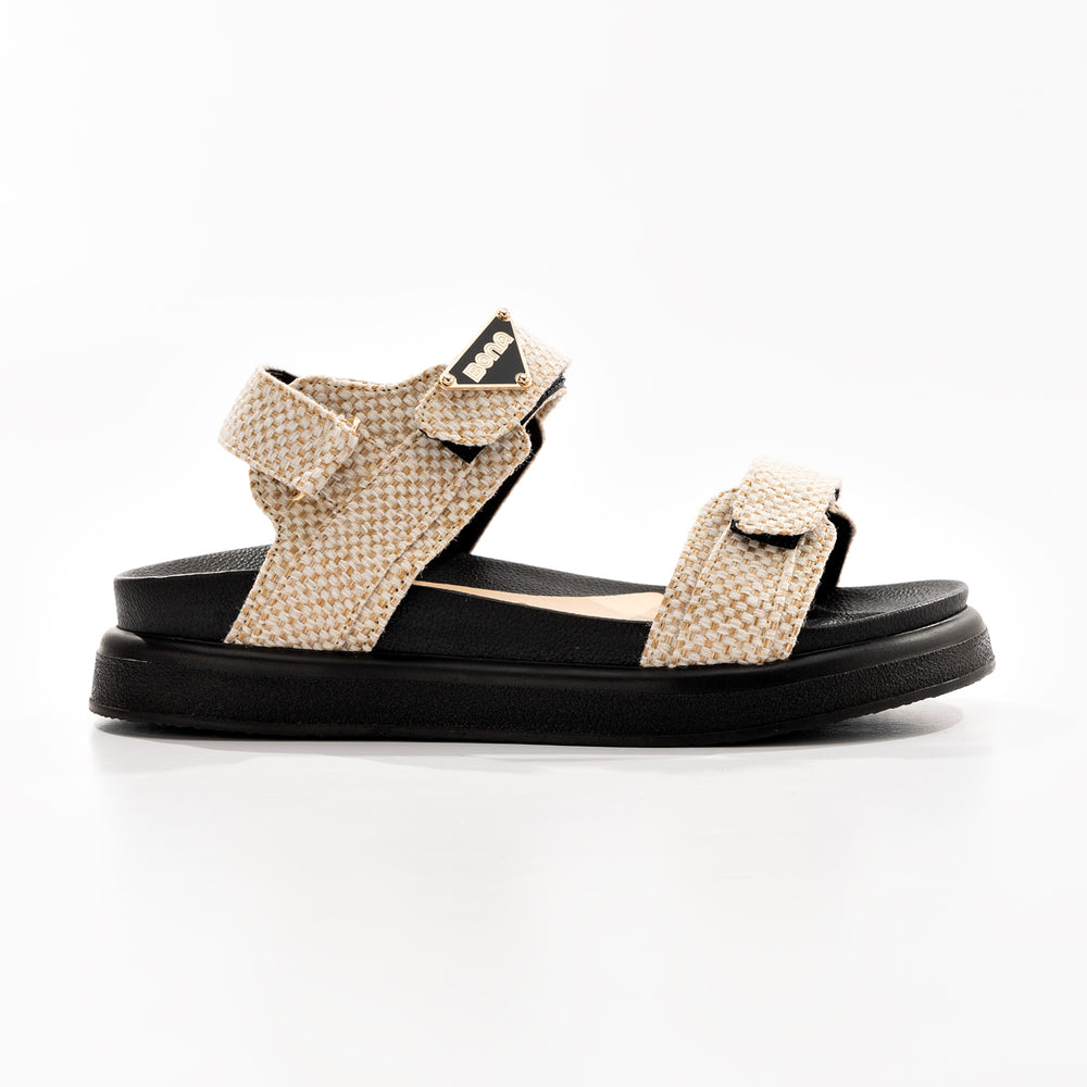 Sandalias de moda para mujer, con diseño moderno que combina comodidad y estilo urbano casual. Elaboradas con correas en tejido sintético texturizado tipo lona resistente y durable. Sistema de cierre con velcro ajustable en tobillo y empeine para un ajuste personalizado y seguro. Correa trasera elástica que facilita el calce.