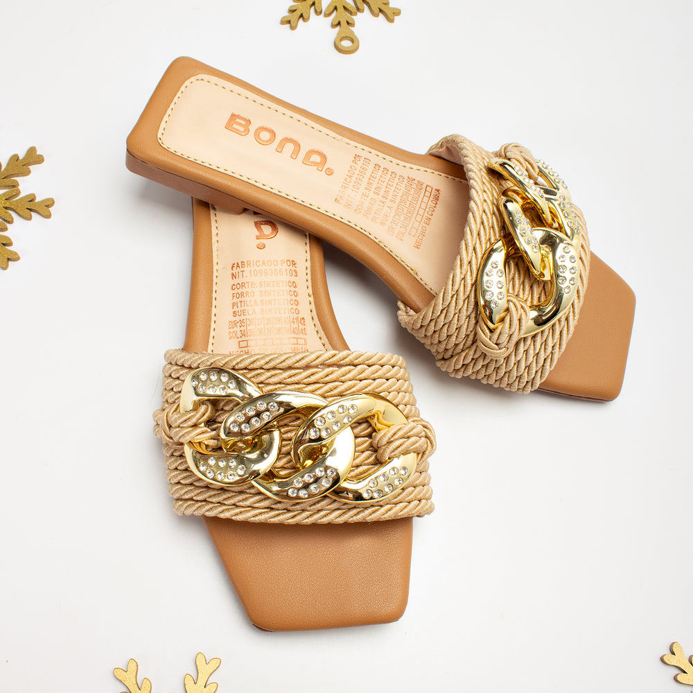 Sandalia plana de moda para mujer,unica en su estilo con detalles sofisticados y unicos para brindarte versatilidad y elegancia.