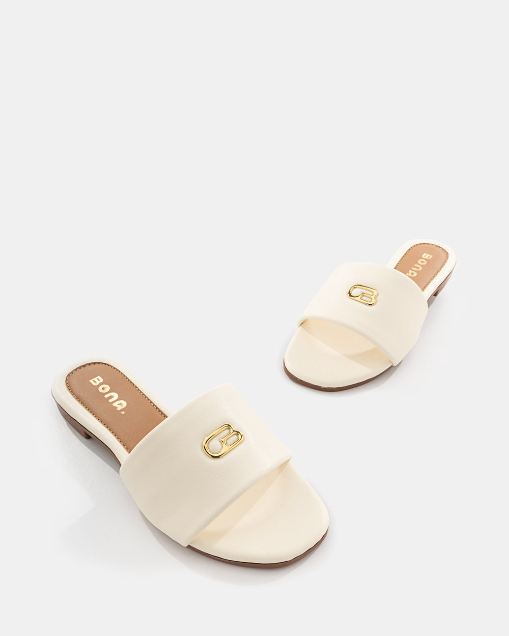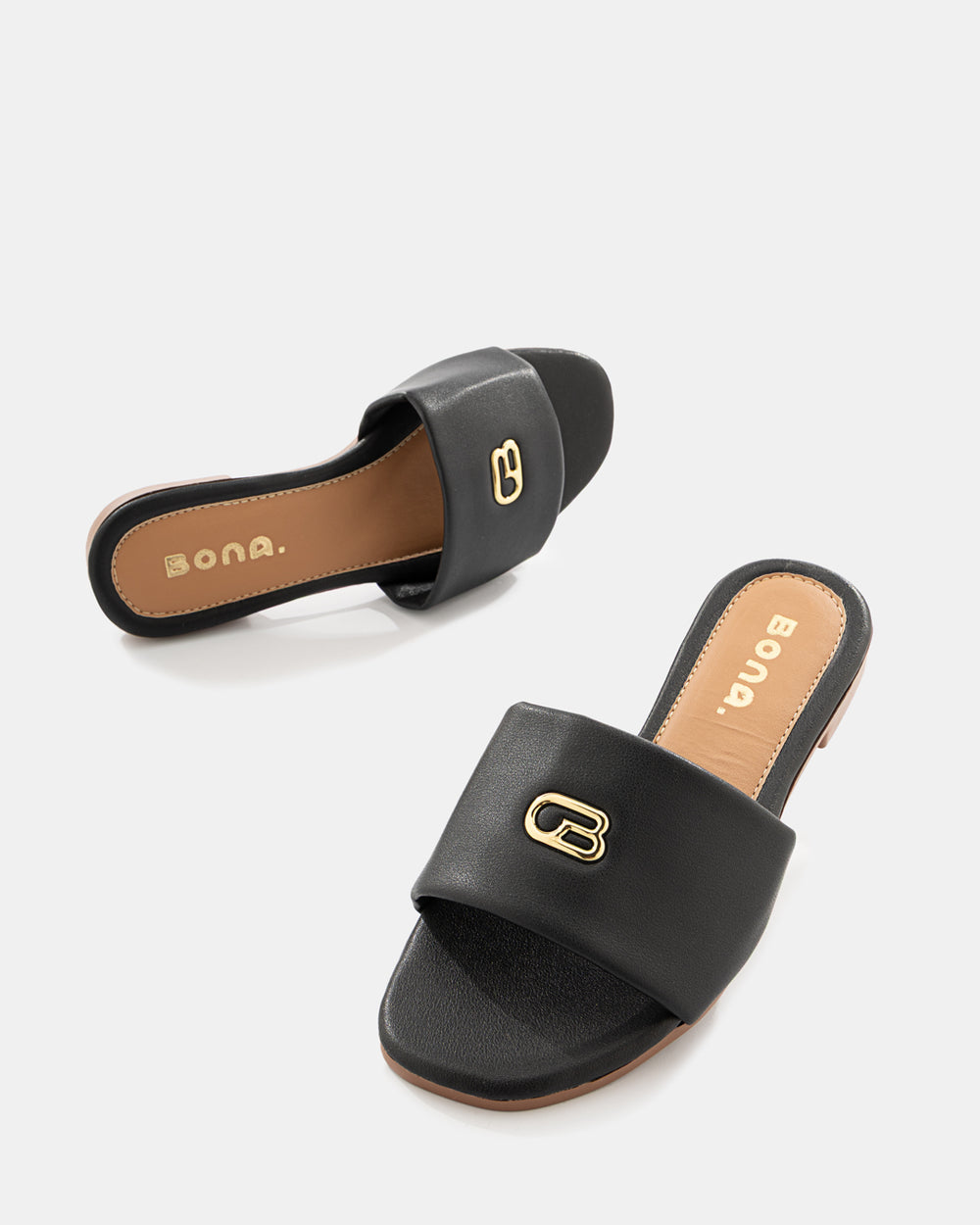 Este slide representa la fusión perfecta entre tendencia y funcionalidad. El patrón acolchado tipo nube, inspirado en las icónicas piezas de lujo contemporáneo, añade dimensión y textura visual. La hebilla dorada con logo Bona crea un punto focal distintivo que eleva el diseño de casual a premium. El tacón bajo cuadrado aporta una silueta moderna y estable.