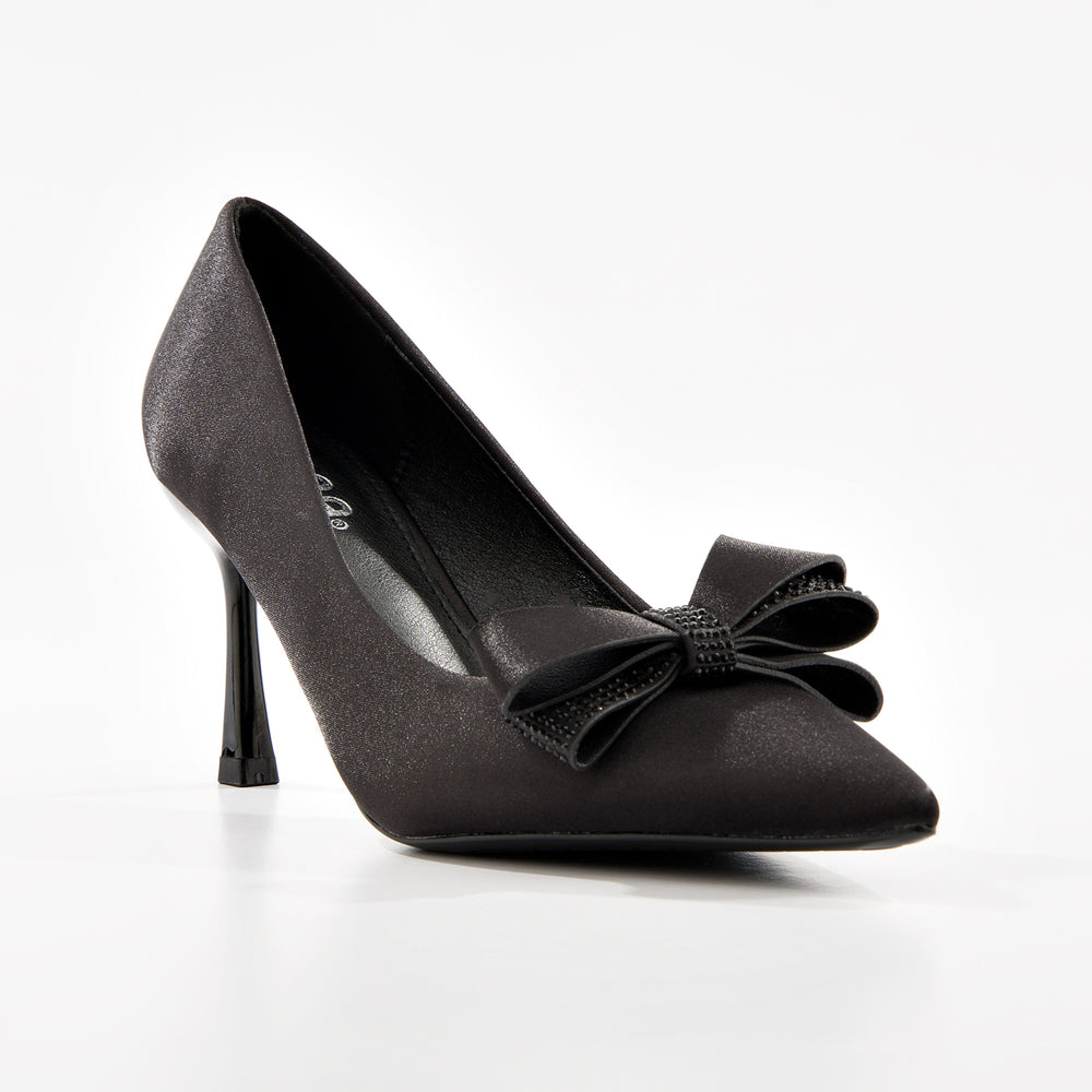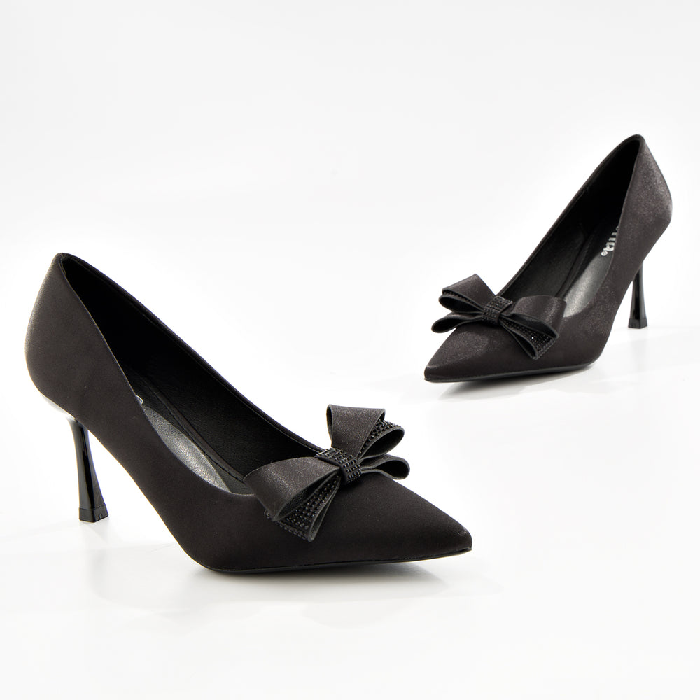 Tacones de moda para mujer, con detalle de moño decorativo en la puntera. Diseño puntiagudo sofisticado con tacón de aguja de aproximadamente 8 cm. Perfectos para ocasiones especiales o para elevar tu look diario. Incluyen plantilla acolchada para mayor comodidad y suela antideslizante. Su acabado mate y el moño texturizado aportan un toque de distinción y feminidad.