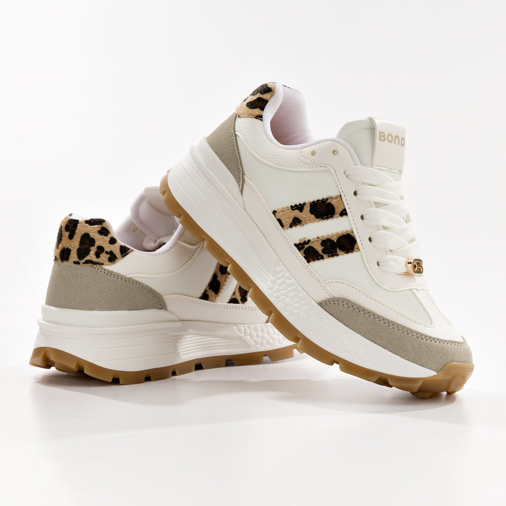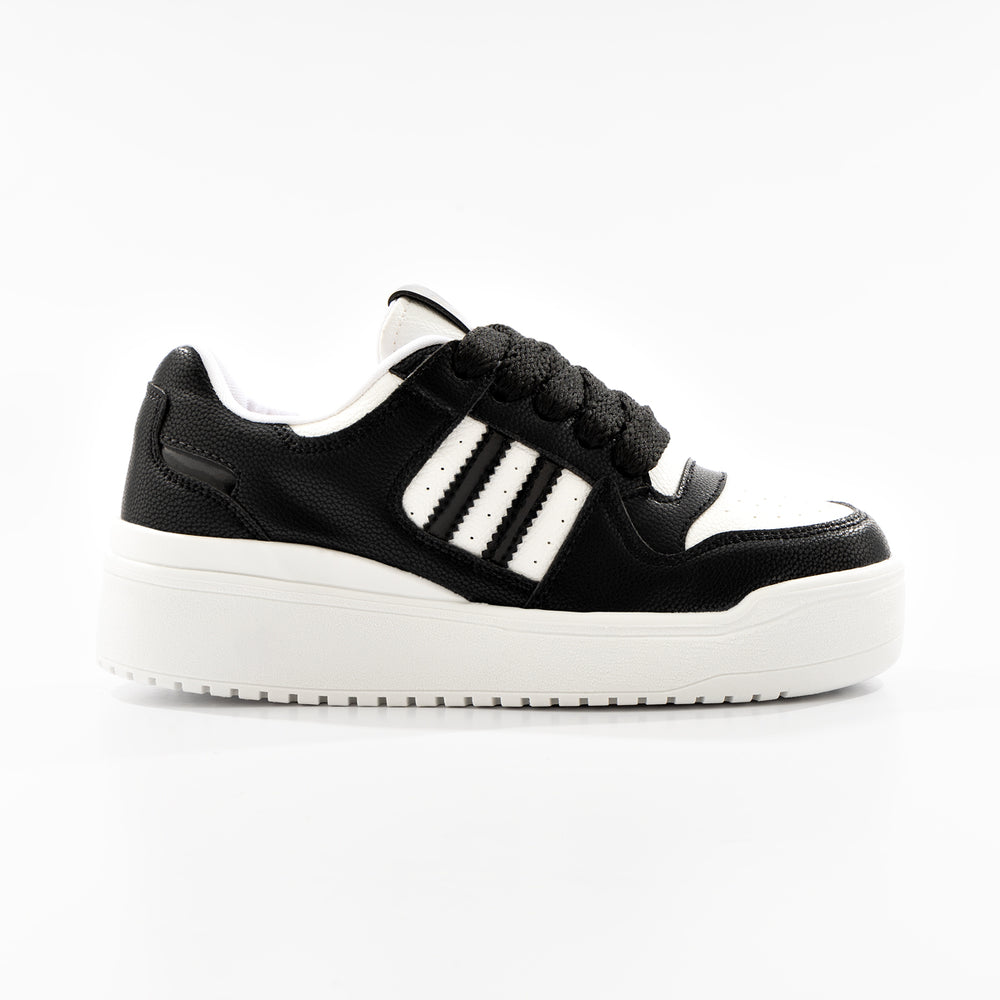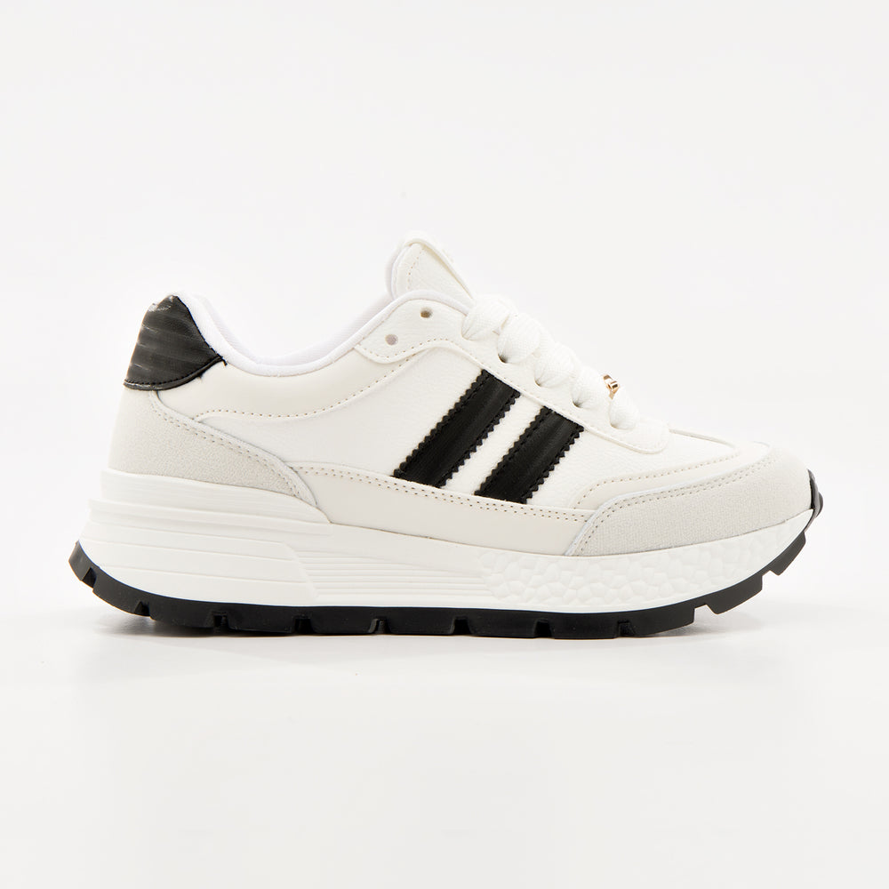 Tenis de moda para mujer, material sintético de alta calidad con detalles en cuero sintético, diseño de capas superpuestas con tres franjas laterales, cordones ajustables, plantilla acolchada con tecnología de confort, suela gruesa tipo plataforma de goma antideslizante con diseño texturizado. Estilo urbano moderno con altura adicional, perfectos para uso diario y looks casuales, combinan con cualquier outfit.