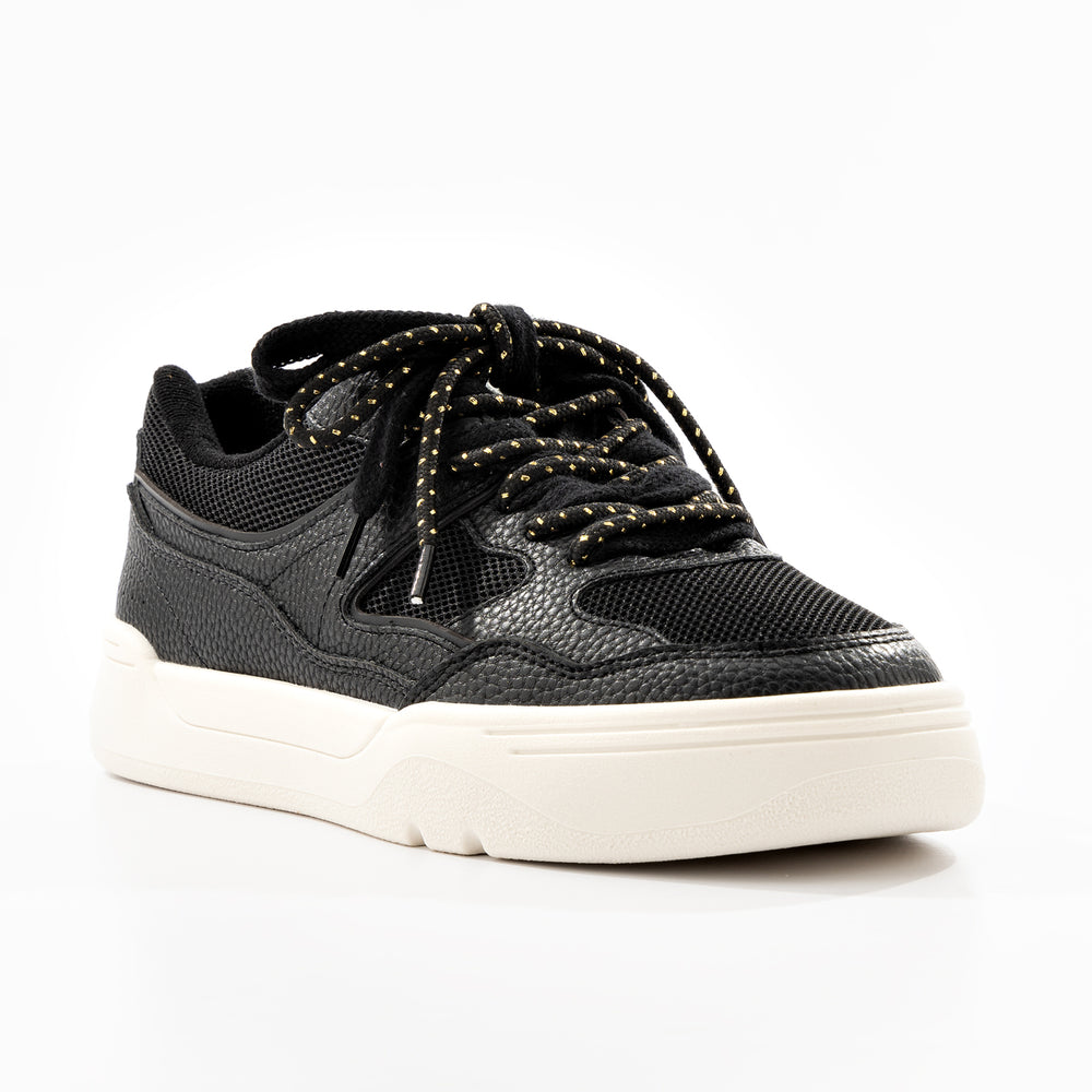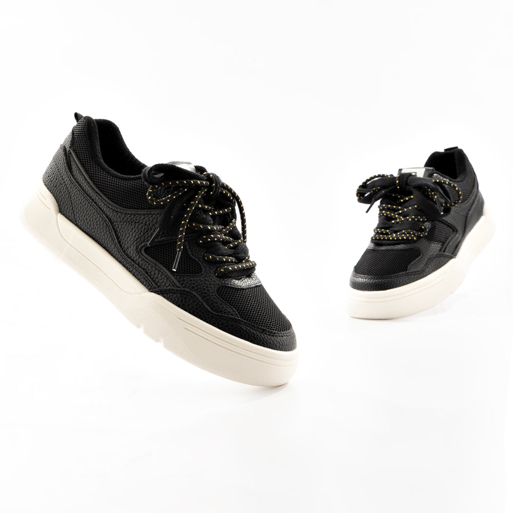 Tenis de moda para mujer, con detalles de malla transpirable. Confeccionado en material sintético con paneles de malla perforada. Cuenta con cordones blancos satinados, forro interno acolchado y suela blanca con excelente agarre. Perfecto para uso diario o actividades informales donde se busca comodidad y un look fresco y moderno.