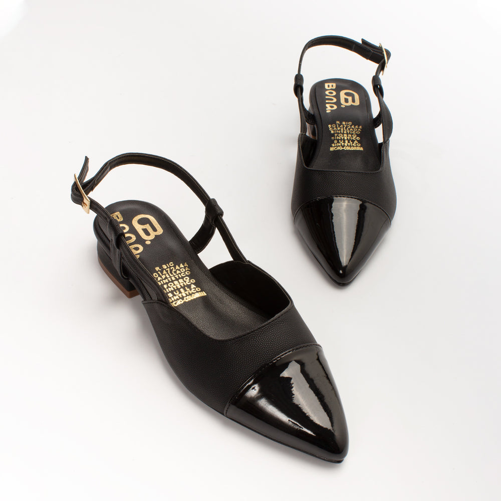 Baleta en punta de moda para mujer, Elegante y atemporal, esta baleta de punta está confeccionada en charol brillante y material sintético, lo que le otorga un acabado impecable y duradero brinda un aire femenino, mientras que la correa ajustable en el tobillo, con cierre de hebilla metálica, asegura un ajuste perfecto y cómodo.